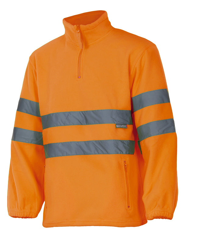Opening with zipper. Reflective strips on the torso and sleeves. Elastic cuffs. Adjustable with stopper.. Two pockets: 2 piping pockets, with Polar zipper. 100% polyester Weight 280 gr/m2 Dimension