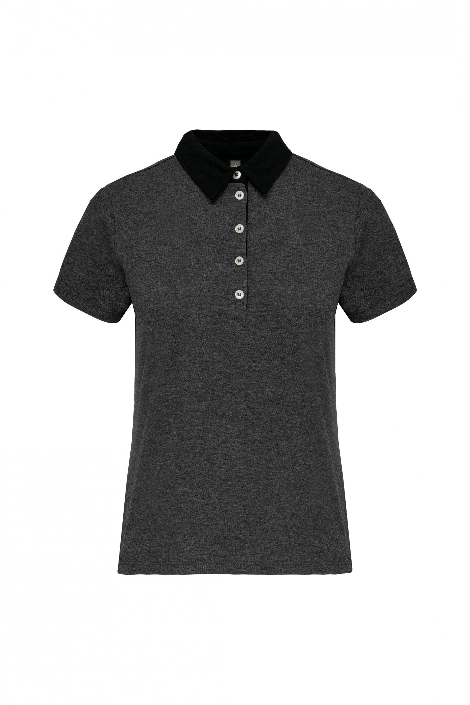 100% enzyme-bathed combed cotton (Dark Gray Heather: 65% polyester/35% cotton). Shirt collar. Collar and interior placket with 5 buttons in pearl white. Sleeve and hem finish with double stitching. Weight 180 Dimension