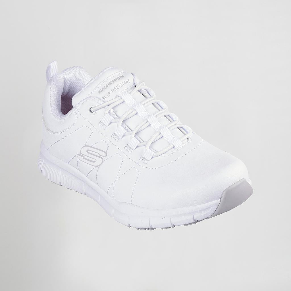 O calçado de trabalho feminino Skechers Work™: Nampa - Beja foi desenvolvido para profissionais que procuram conforto, praticidade e segurança durante a rotina laboral. Com design moderno e discreto, adapta-se facilmente a diferentes ambientes profissionais, desde restauração e saúde a espaços industriais e comerciais.