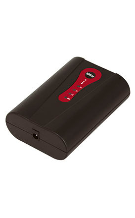 Removable rechargeable battery located in a pocket. 2,200 mAh.