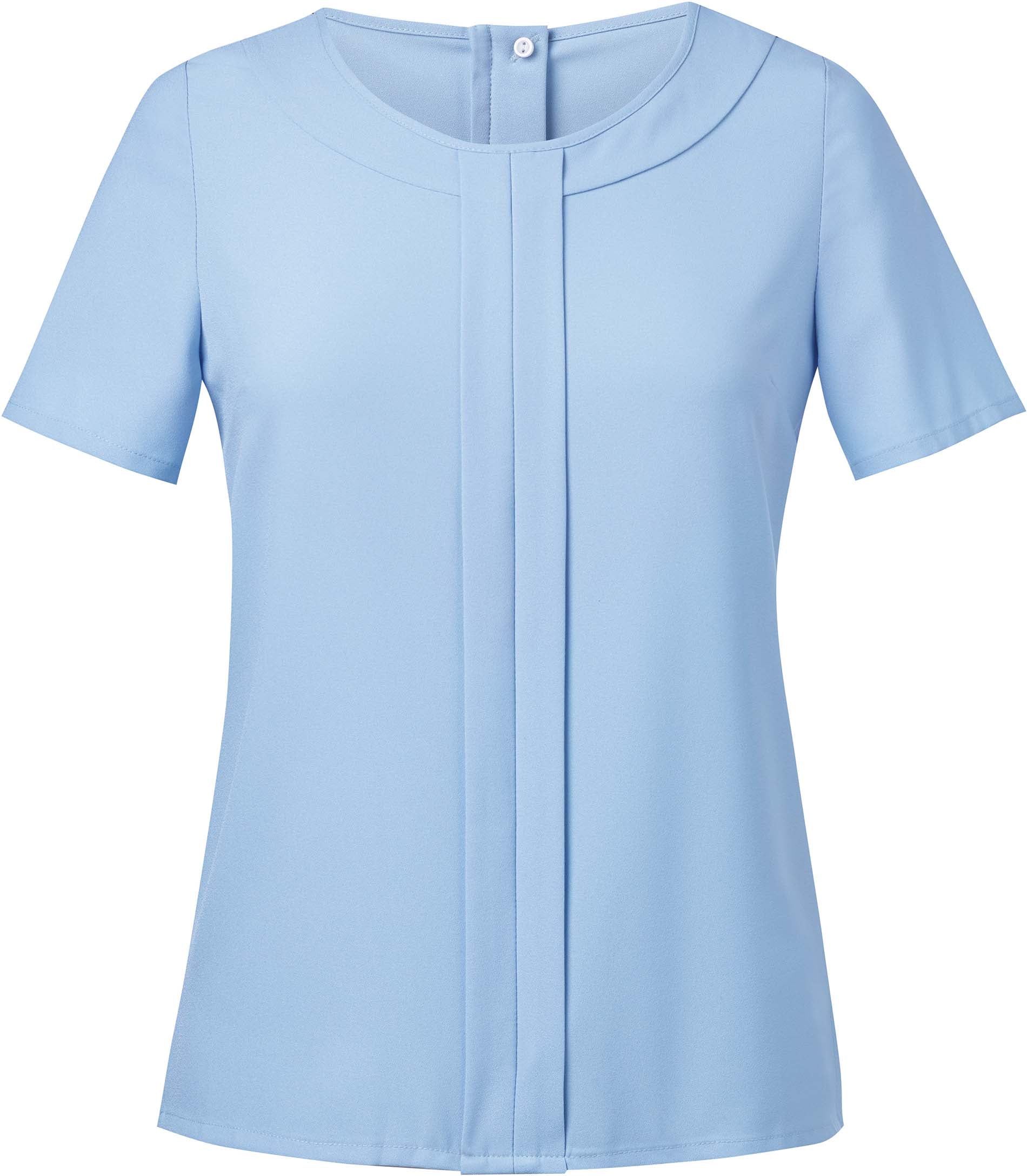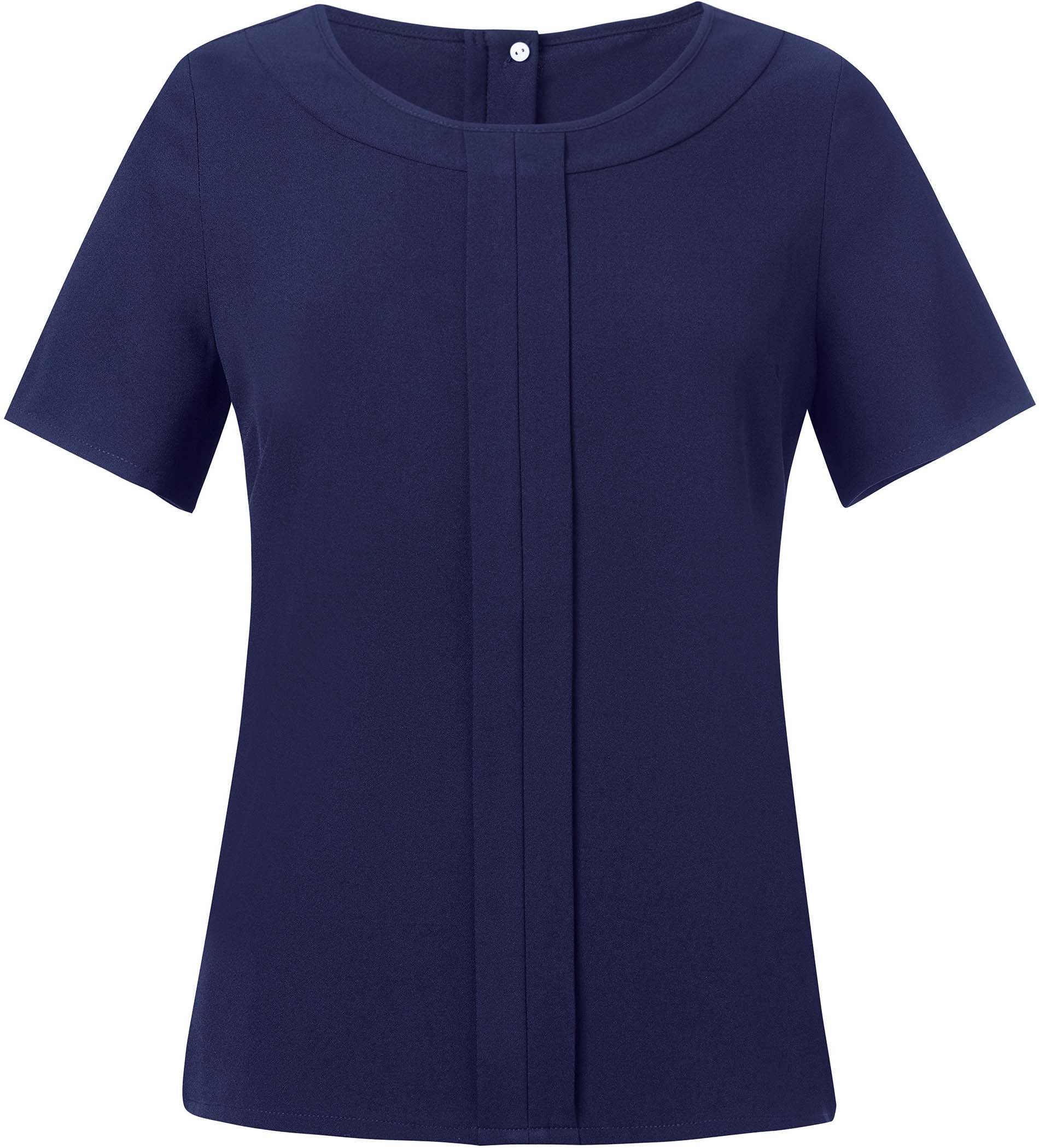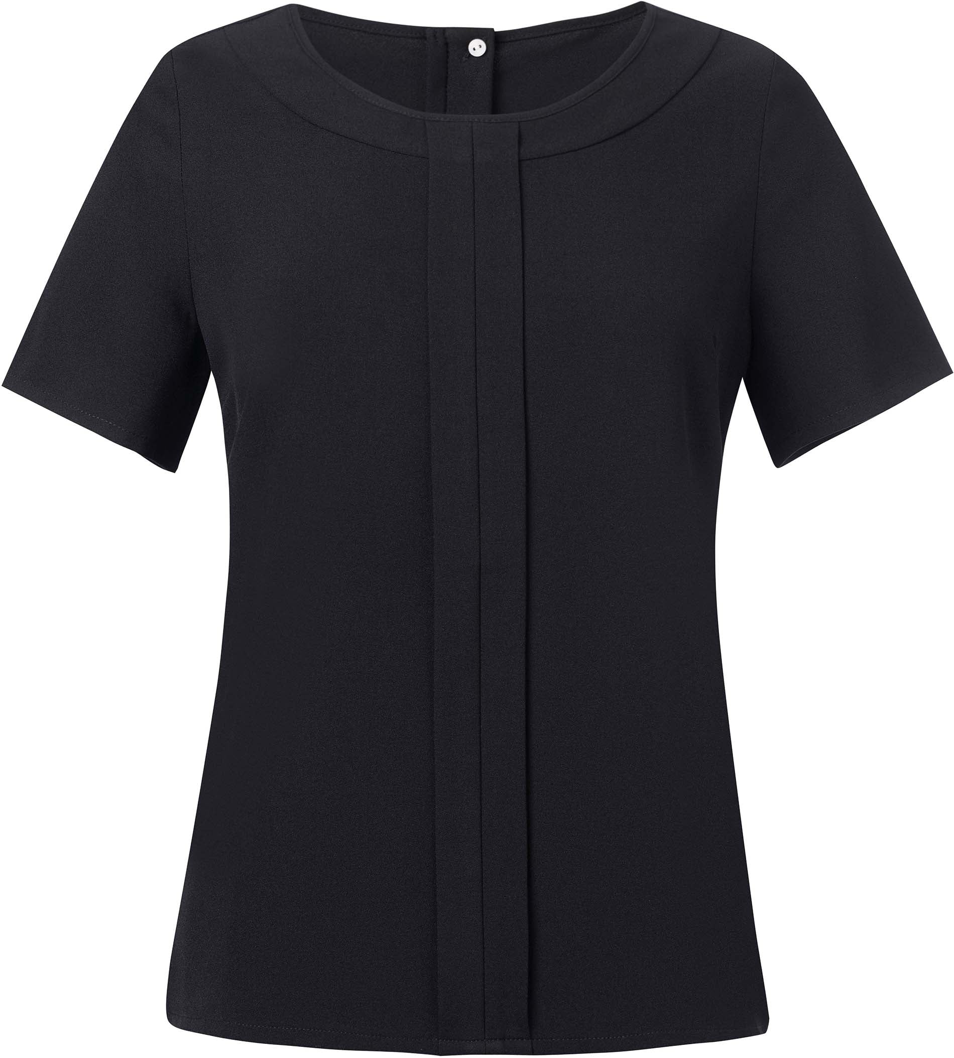 100% polyester. Short-sleeved blouse in Chinese crepe. Gold clasp at the back. Easy treatment. Machine washable. Weight Dimension