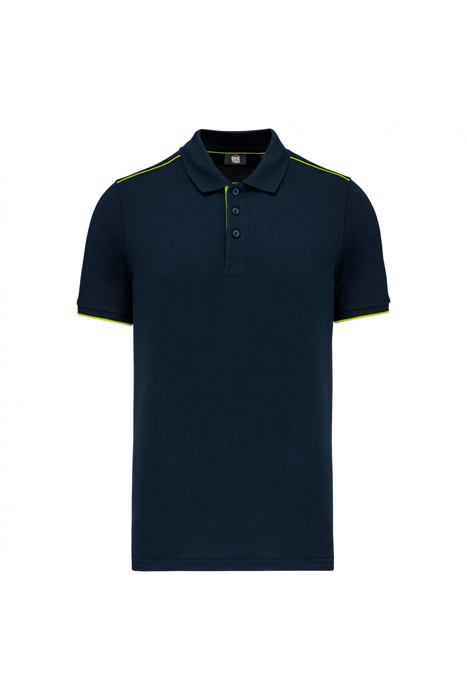 - Contrasting stitching on the neckline, shoulders, and placket. Complete work outfits in matching colors.