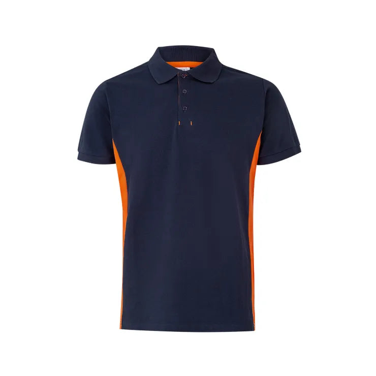 Central fastening with buttons. Ribbed collar and lower part of the sleeve. Contrasting color on the sides, inside the buttonhole, fabric band covering the collar seam and Piqué loops. 60% cotton - 40% polyester Weight 180 gr/m2 Dimension