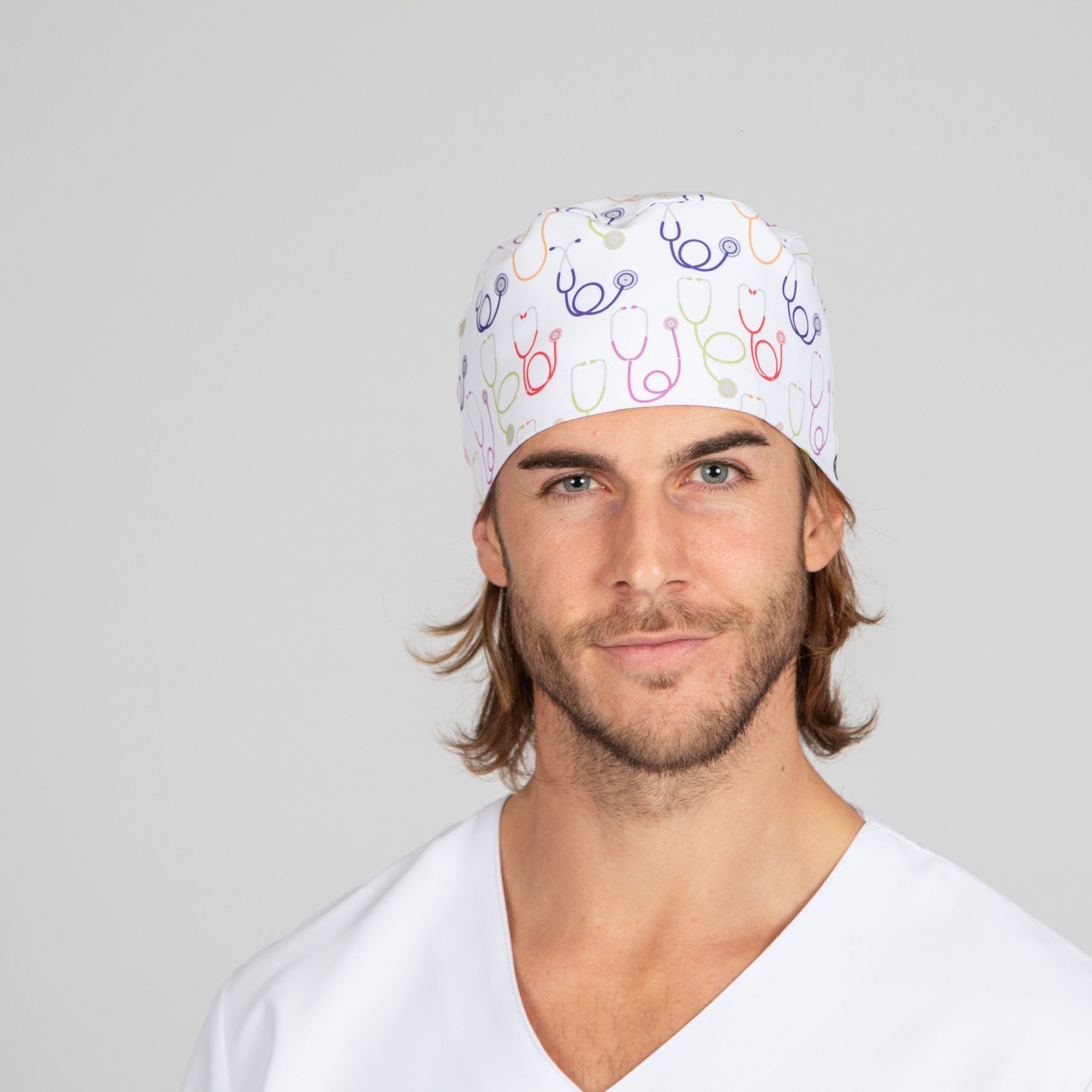 Surgical cap in Microfiber fabric to match the tunics in the same pattern. Antibacterial and liquid repellent fabric. It does not need ironing, it can be washed at 90 degrees and it dries quickly and does not change the color after several washes. Tolerance to leach splashes.