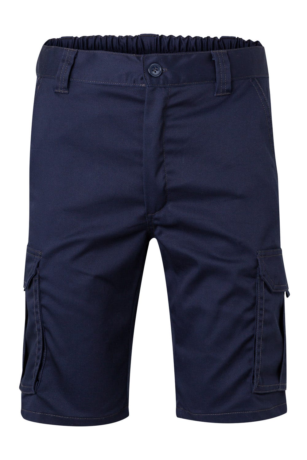 Central zip and button. Contrast threaded seams. Elastic waistband. Double security seam. Six pockets: 2 French pockets. 2 bellows pockets, with double central bellows, flap, velcro and pulls. patch, with flap and Stretch velcro. 16% polyester - 46% cotton - 38% EMET Weight 240 gr/m2 Dimension