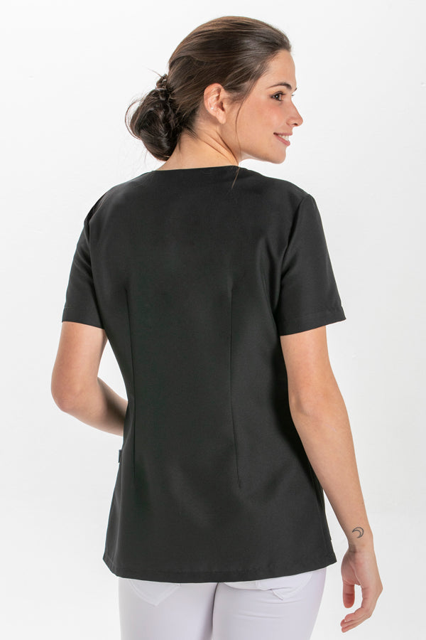 Women's microfiber tunic. Short sleeve. Fitted piece with hook-and-eye closure and topstitching on the chest. It has two lower pockets and...