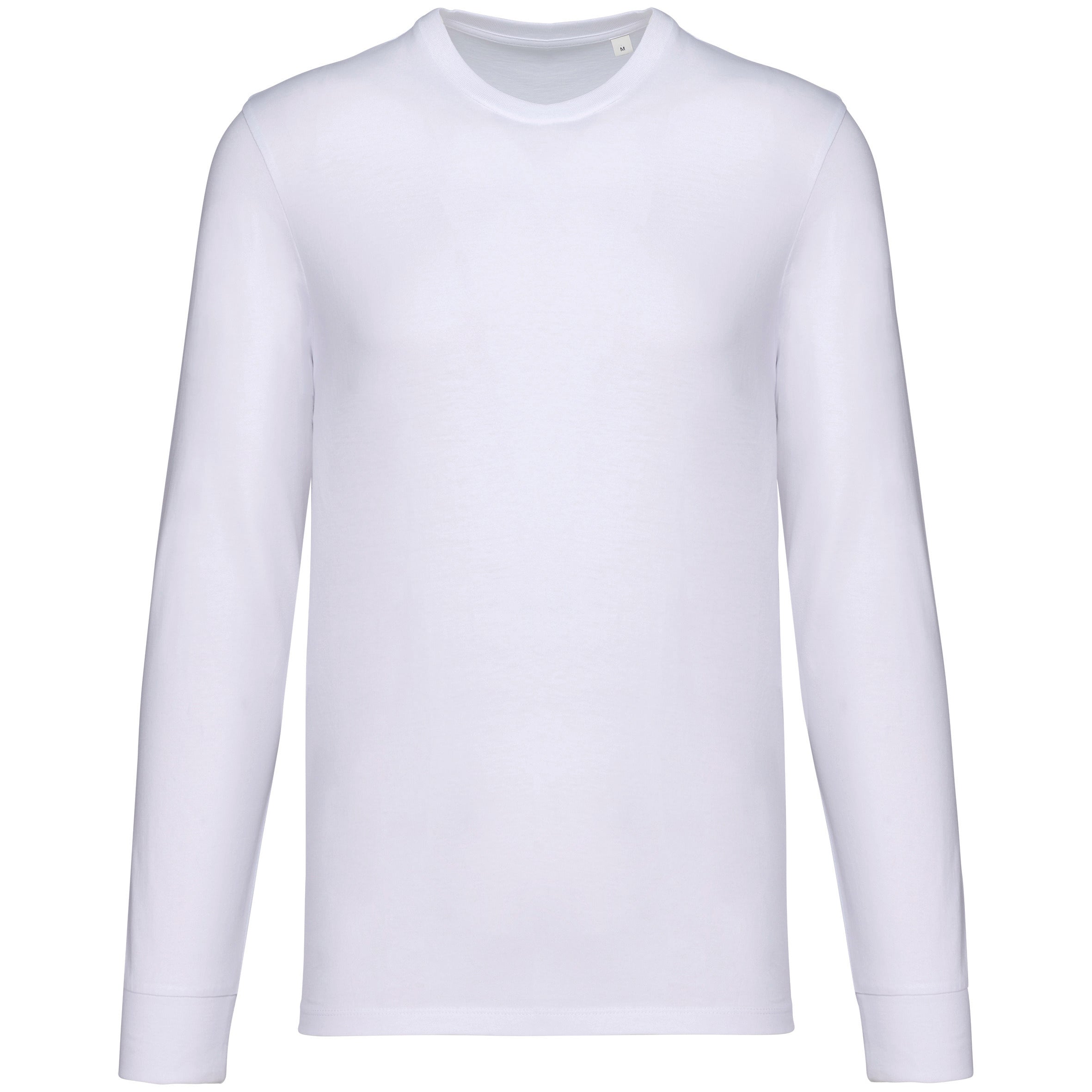 100% algodón orgánico. Algodón peinado. Corte justo. Costuras laterales. Baño enzimático. Escote y puños en punto canalé 1 x 1. Cinta de costura en el escote en el tejido principal. Dobladillo con doble costura. Refuerzo en los hombros en el material principal.
