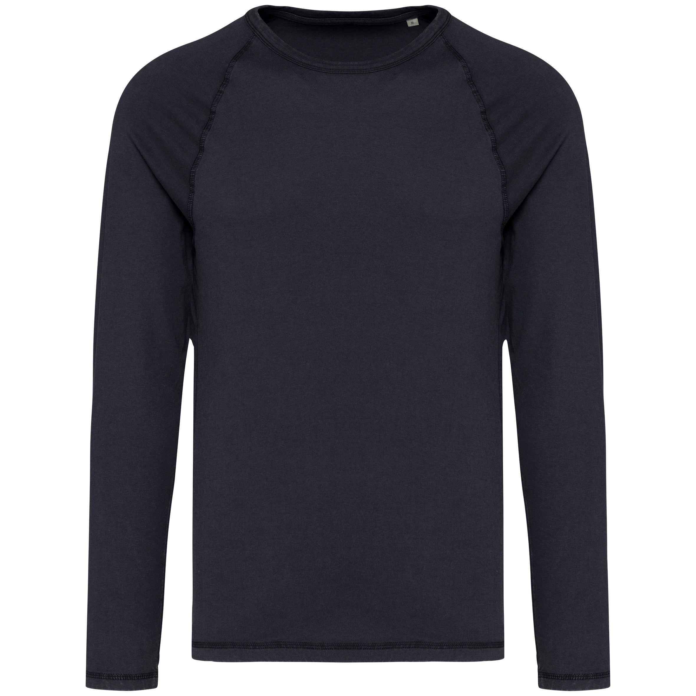 Corte ajustado. Costuras laterales. Efecto lavado. Mangas raglán. Cuello redondo con canalé 1x1. Costuras de recubrimiento en mangas raglán, puños y bajo. Cinta de refuerzo en el cuello. Teñido posterior a la fabricación: los colores pueden variar ligeramente entre prendas. Este producto puede desteñir al contacto con superficies o prendas de colores claros.
