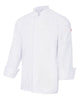 chaqueta de manga larga unisex, con puños doblados, cierre cruzado con botones forrados cosidos, cuello de sacerdote y bolsillo del pecho izquierdo. / span> modelo semi ajustado, con costuras posteriores. hecho de sarga blanca. es un Básico para cocineros y chefs en Hosteleríaes, restaurantes y cocinas en general.