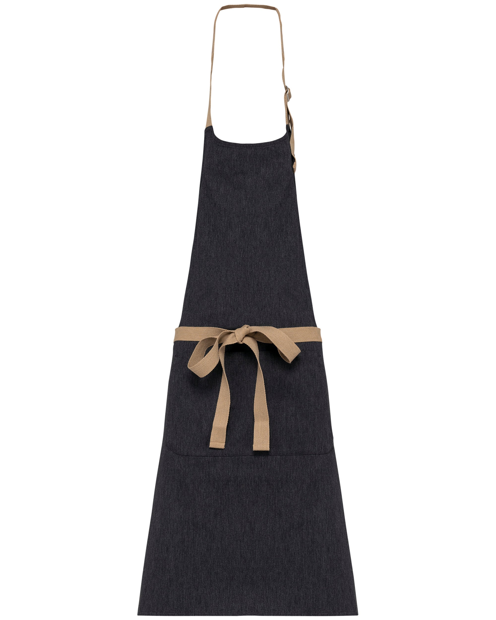 El delantal ajustable es perfecto para actividades profesionales que requieren comodidad y resistencia. Confeccionada con tejido reciclado, cada pieza es única y cuenta con un gran bolsillo frontal con dos compartimentos para mayor practicidad.