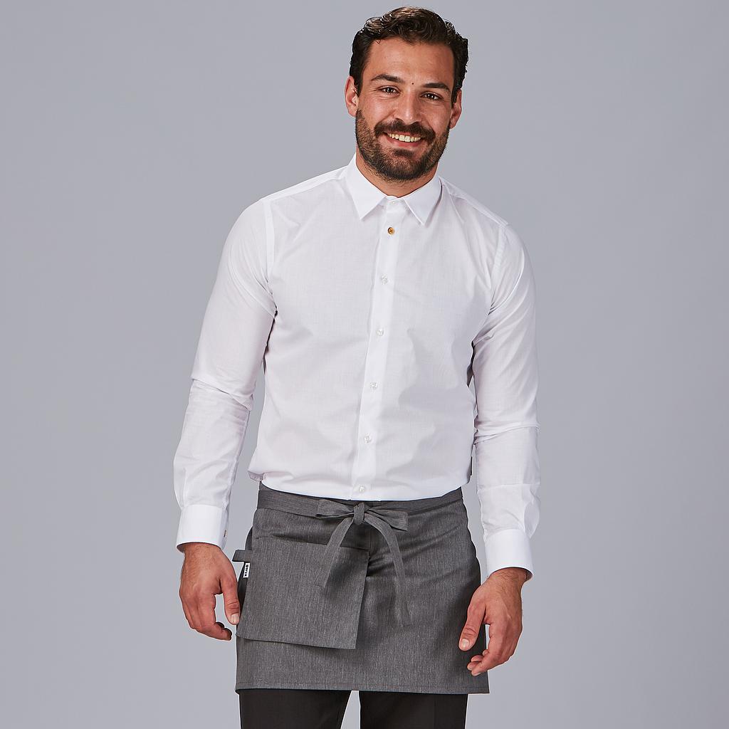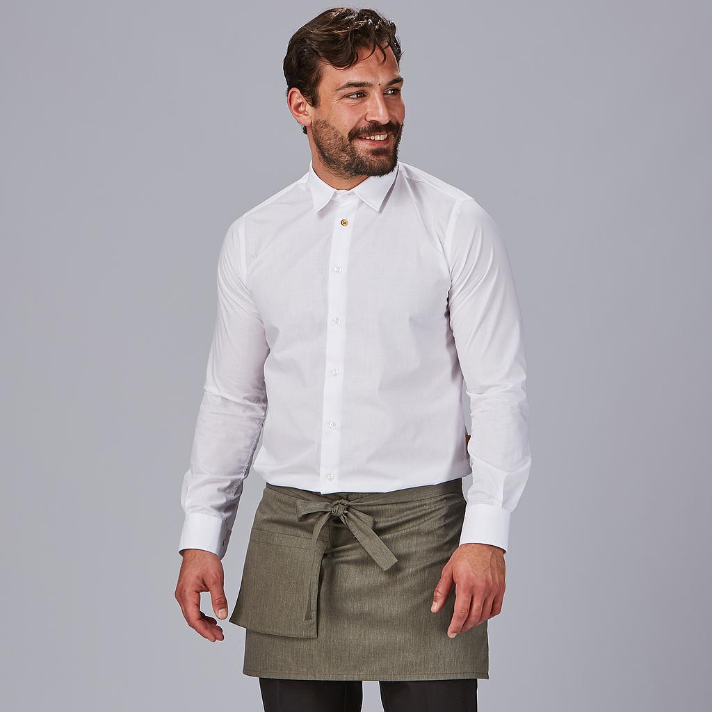 El delantal corto de sarga reciclada ofrece una solución práctica y sostenible para profesionales de la hostelería, la restauración, la cocina y el comercio minorista. Con un diseño moderno y funcional, se adapta fácilmente a un entorno profesional, aportando elegancia y respeto por el medio ambiente. Este modelo destaca por su corte compacto y ajuste práctico, diseñado para garantizar libertad de movimiento durante toda la jornada laboral.