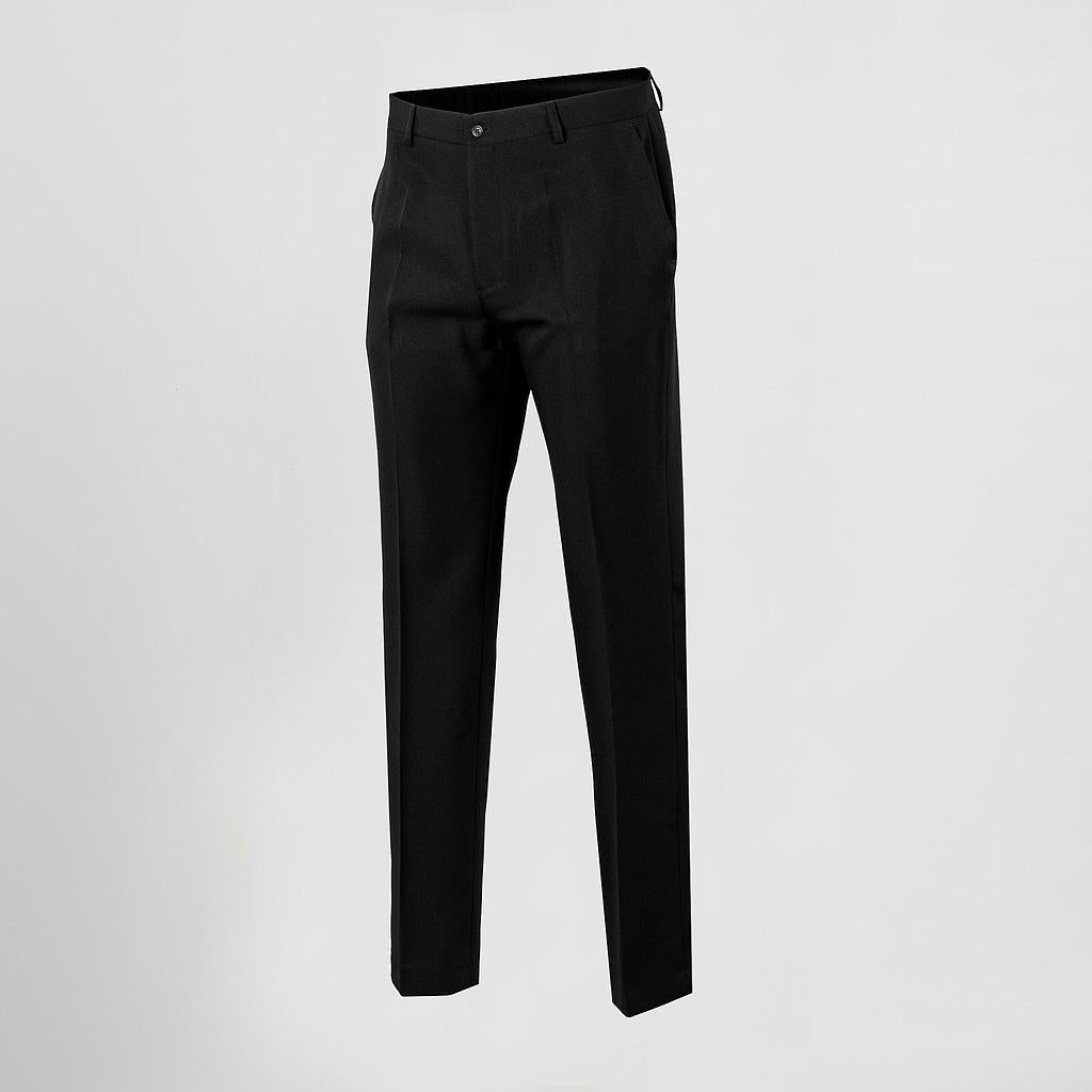 Unisex Pantalones de ajuste regulares con una cremallera y botón, bucles de cinturón, dos bolsillos franceses en los lados y uno con un ojal en la parte posterior. Modelo clásico Sin grapas, hecho de sarga al 100% de poliéster. ideal para los uniformes de los camareros en hoteles y restaurantes, recepción, oficina, transporte o comercio.