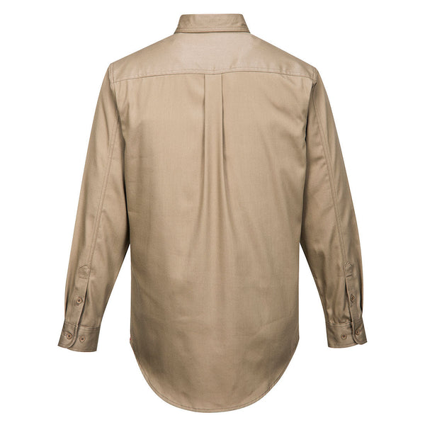 Esta elegante camisa es ligera y cómoda. La máxima protección está garantizada con resistencia permanente a las llamas y protección ARC contra arcos eléctricos. La cola de la camisa permanecerá ajustada durante el movimiento y durante todo el día. Las características útiles incluyen puños con botones ajustables y bolsillos en el pecho con solapas.