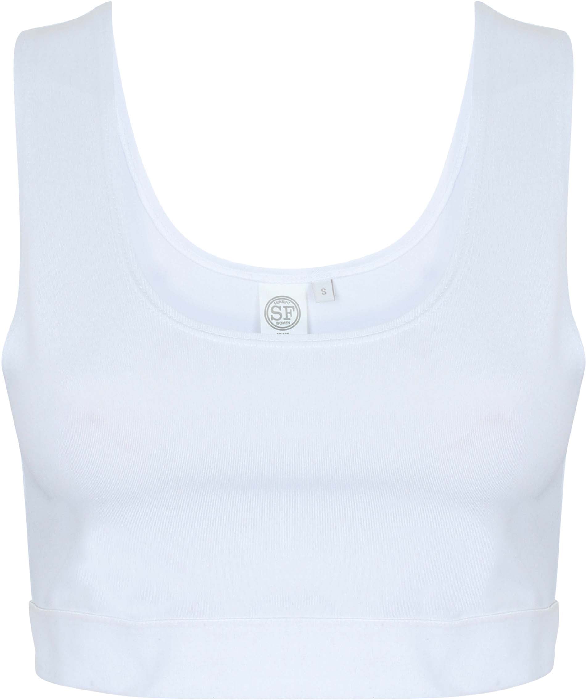 96% poliéster / 4% elastano. Ideal para sublimación. Etiqueta extraíble. Banda elástica de soporte debajo del pecho en color blanco para una fácil personalización. Acabado con doble costura. Lavable a 40°C. Gramaje 240 Dimensión