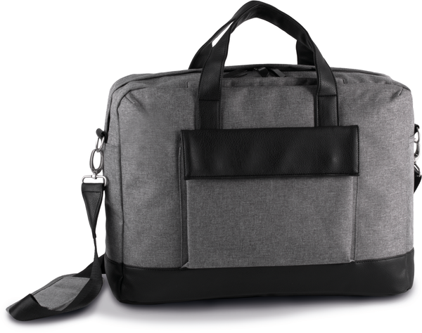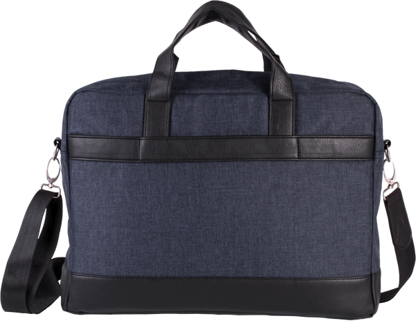Mala para computador em poliéster 600D. Fundo da mala, pegas e presilha em poliuretano. Compartimento acolchoado para guardar um computador até 15" e um bolso com fecho acolchoado para colocar um tablet. 2 bolsos interiores, 1 bolso com fecho na parte superior da mala para guardar o telemóvel, 1 bolso frontal com pala e molas. Presilha nas costas para fixação num trolley, alça de ombro amovível.