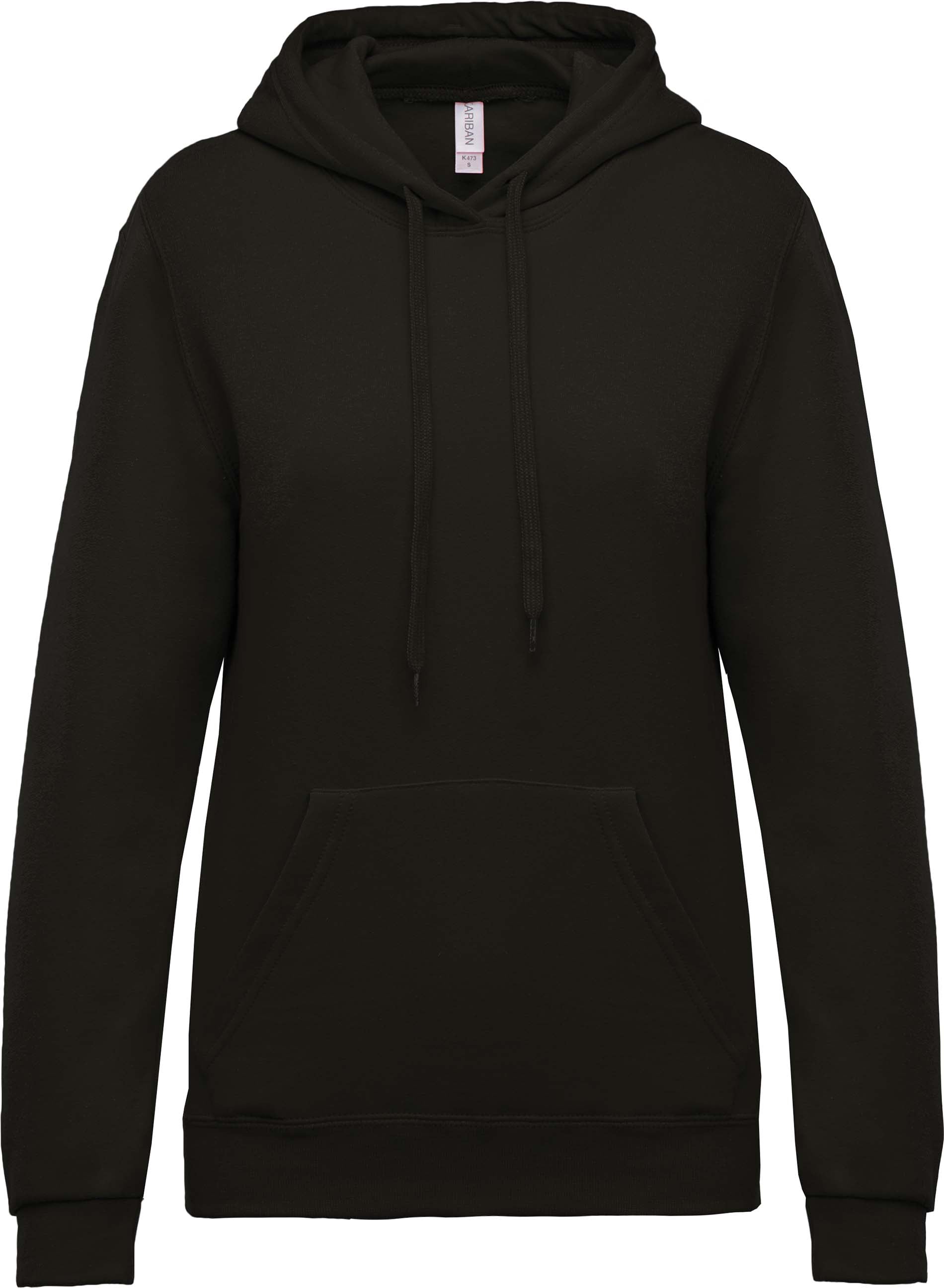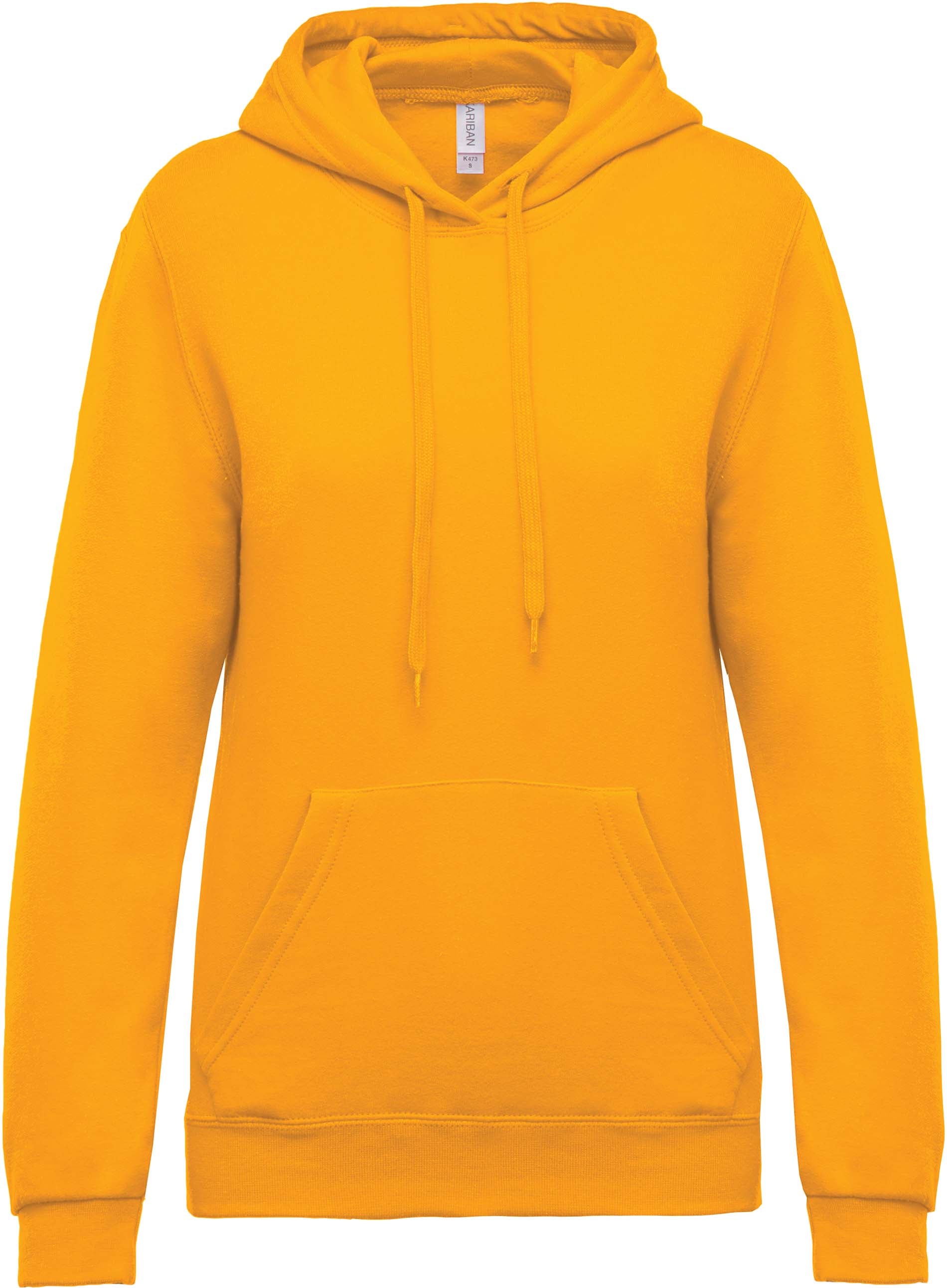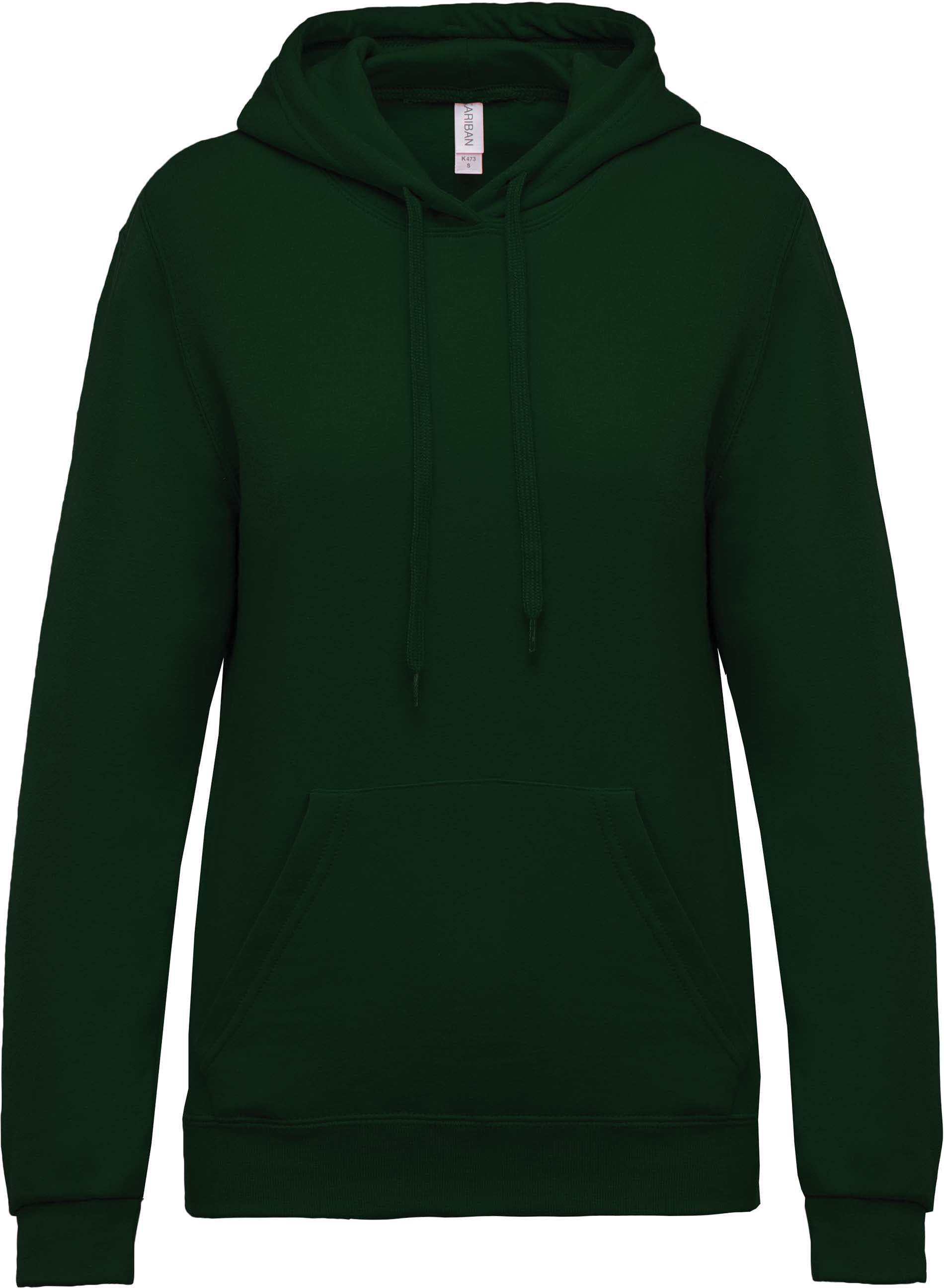 80% algodón / 20% poliéster. Interior cardado. Mangas rectas. Forma tubular. Capucha forrada con cordón de ajuste de color. Bolsillos canguro. Acabado de mangas y cinturilla en punto de canalé. Gramaje 280 Dimensión