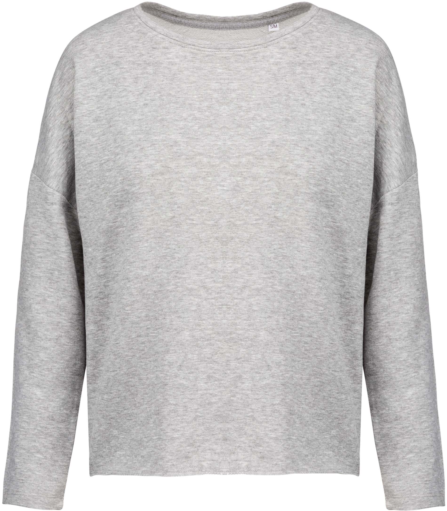 91% algodón / 9% poliéster (Light Grey Heather: 87% algodón / 9% poliéster / 4% viscosa). Interior "French Terry" sin cardar. Muy suave al tacto. Corte amplio y relajado. Escote amplio. Cubierta de costura de moda. Acabados rectos en el bajo. Acabados de mangas con doble costura. Gramaje 270 Dimensión