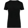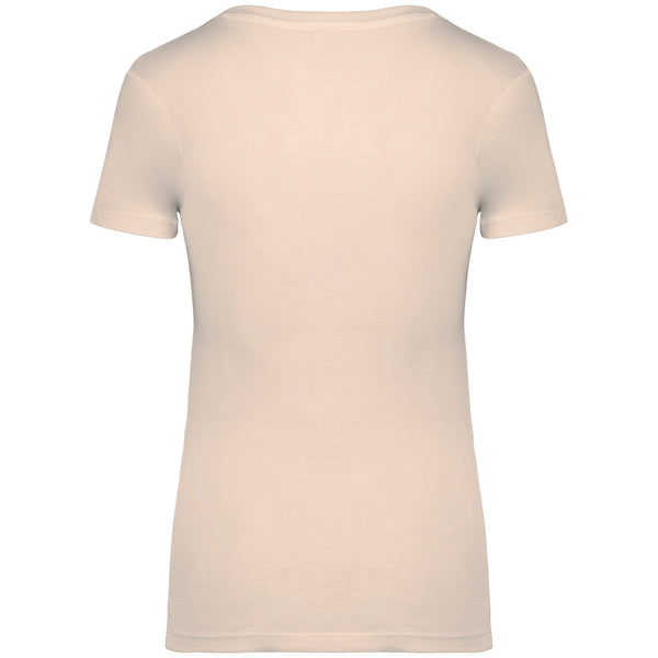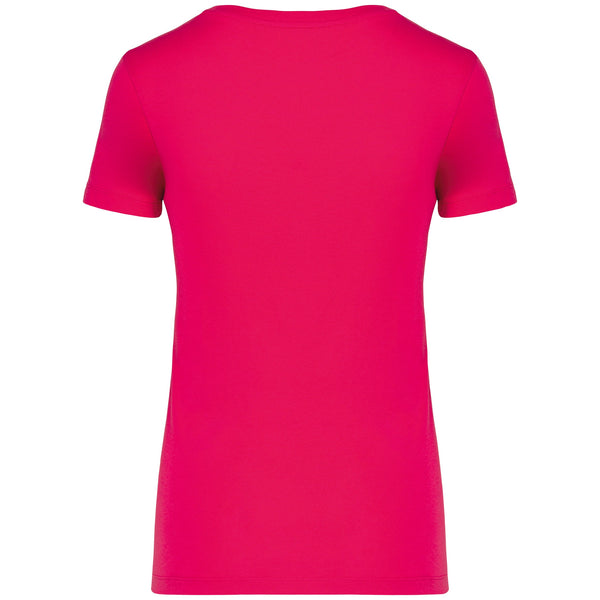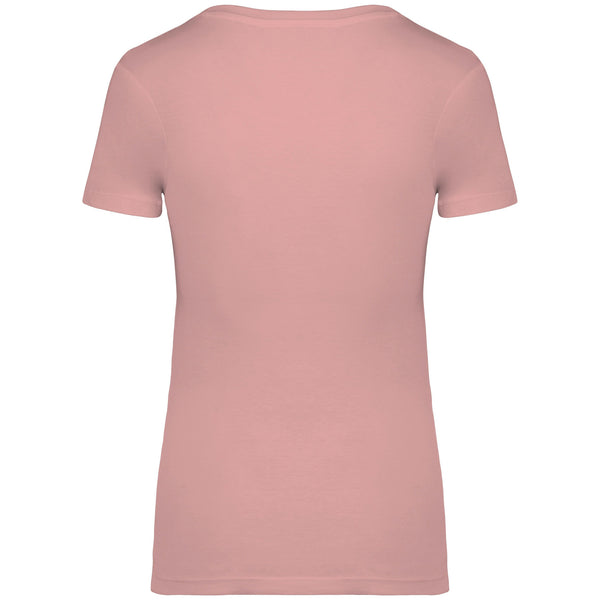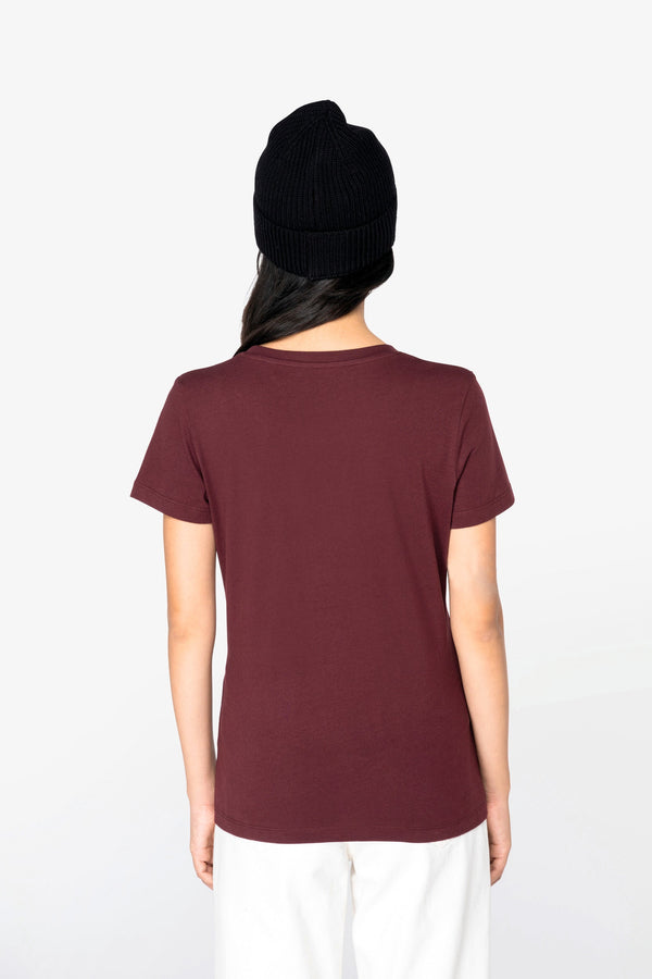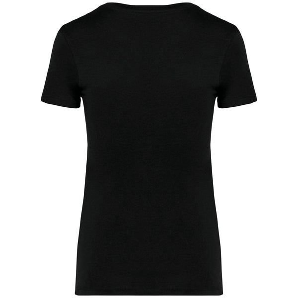 Algodón peinado hilado en anillos. Corte justo. Costuras laterales. Baño enzimático. Escote en punto canalé 1 x 1. Costuras recubiertas en el interior del escote en el tejido principal. Bajo con doble costura en mangas y cinturilla.