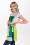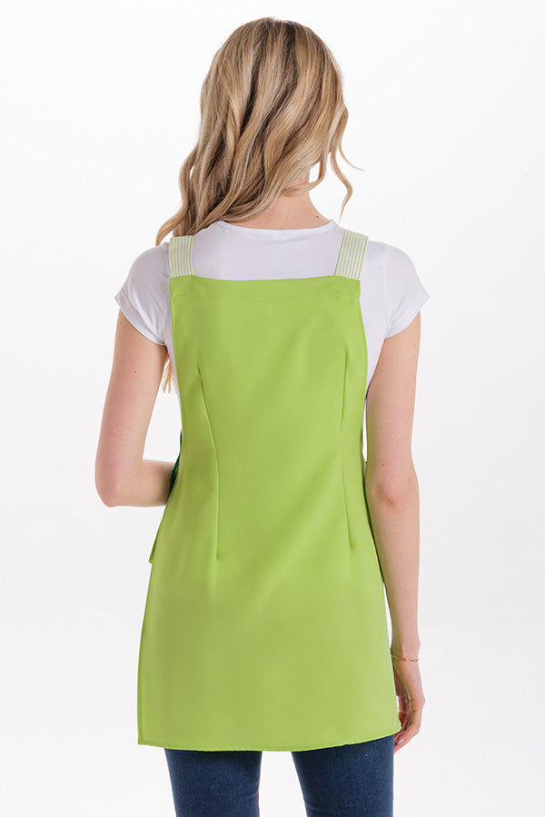 delantal en tela azul cuadrada con un bolsillo central grande con una impresión de autocaravana. Vivo en Navy Contraste azul. ajustable con botones ajustables en ambos lados. tamaño único. Longitud: 81cm