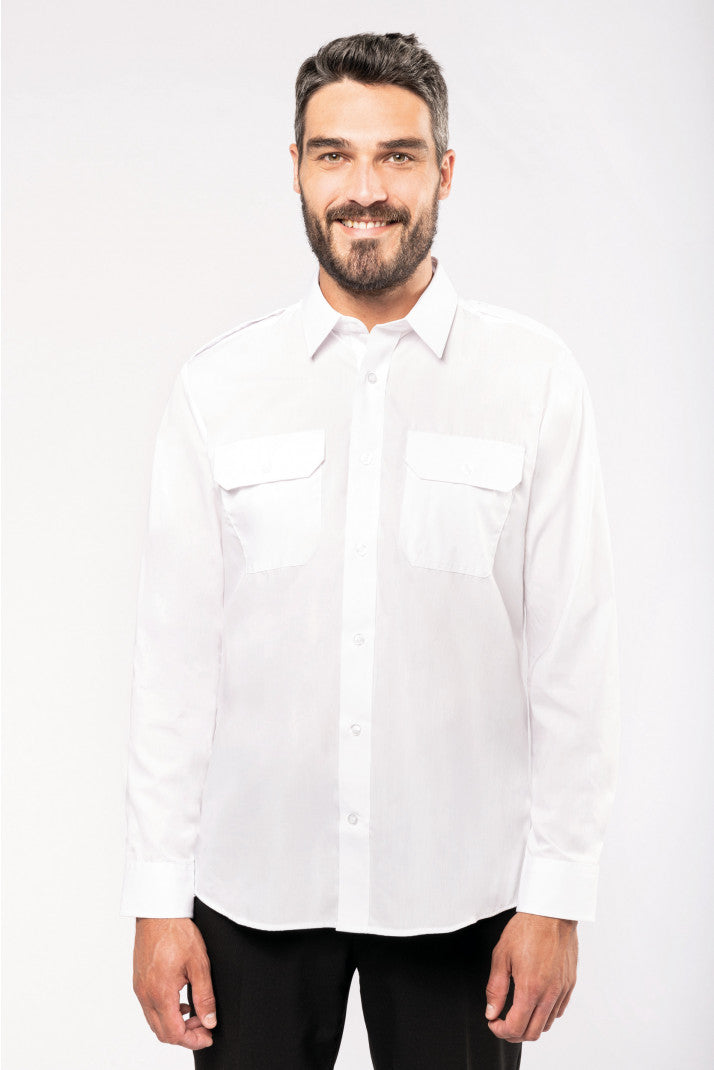 65% poliéster / 35% algodón. Tejido de popelina. Cuidado facil. Botones de colores. 2 bolsillos delanteros con solapa. uno de ellos con espacio para bolígrafo en el lado izquierdo. Pliegue en la espalda. Solapa con botón en los hombros para aplicar los galones (galones no incluidos). Puños ajustables. Gramaje 115 Dimensión