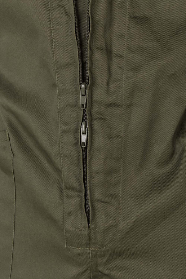 Central zip con doble control deslizante. Mangas de raglán. Cintura de cintura elástica. Cuerpo de doble seguridad ... Cierda cinco bolsillos: 1 bolsillo de parche en el cofre, con cremallera. 2 bolsillos de parche inferior.1 bolsillo de parche posterior .1 bolsillo de herramienta en la sarga de pierna derecha. 65% de poliéster - 35% de peso de algodón 190 gr/m2 dimensión
