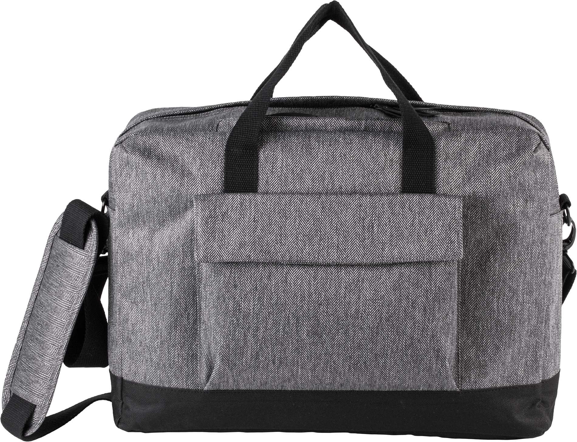 Bolsa para ordenador de poliéster. Fondo de bolso a contraste en poliéster 600D. Compartimento acolchado para guardar un ordenador de hasta 15" y un bolsillo acolchado con cremallera para guardar una tablet. 2 bolsillos interiores. 1 bolsillo con cremallera en la parte superior del bolso para guardar el móvil. 1 bolsillo frontal con solapa y broches a contraste. Trabilla n ... Peso Dimensión 40 x 30 x 10 cm