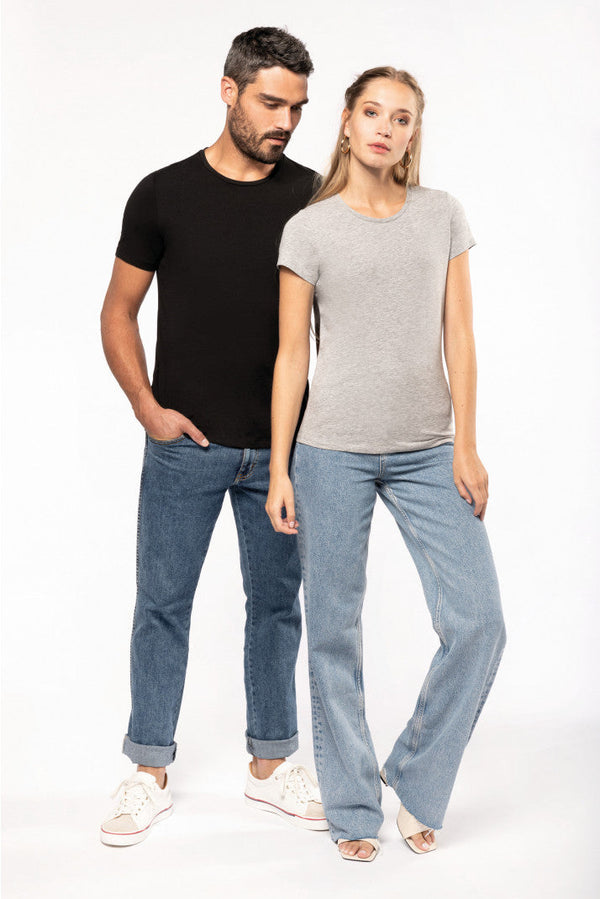 - 97 % coton / 3 % élasthanne. En couleurs mélangées : 87 % coton/9 % viscose/4 % élasthanne. Encolure ronde. Finition des manches et de l'ourlet à double couture. Avec une coupe moderne et ajustée, il s'apparente à un style de prêt-à-porter. Certifié STANDARD 100 par OEKO-TEX®N° CQ1007/7, IFTH.