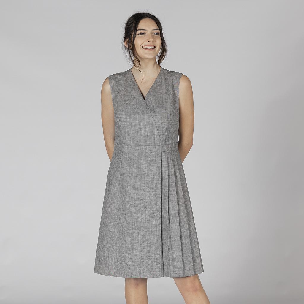 Robe femme sans manches avec fermeture dos et pinces poitrine et dos. Présente des plis originaux sur le côté et une doublure tricotée. . Fabriqué en CHEVIOT 97% Coton - 3% Elasthanne, un tissu avec beaucoup de corps et de résistance. Son élasticité garantit confort et mouvement et son aspect fil déstructuré apporte élégance et une touche informelle. Pour toutes ces raisons, c'est un vêtement idéal pour les uniformes dans l'hôtellerie et la restauration, la réception, le transport, le bureau ou le commerce.