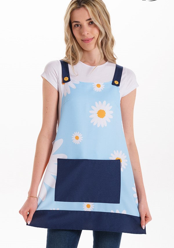 Tablier pour enseignante pour enfants avec imprimé caméléon beige et vert. Combiné avec un tissu doux sur le dos, la poche et les bretelles. Contraste orange sur la bande inférieure et boutons décoratifs sur les bretelles. Fermeture par boutons ruban latéraux. Grande poche centrale séparatrice.