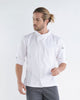 Esta jaleca é ideal para profissionais que procuram um vestuário de trabalho que alie funcionalidade e um design apurado. Pode ser combinada com calças de trabalho e aventais para um conjunto completo e profissional, adequado para diversas áreas de atividade.