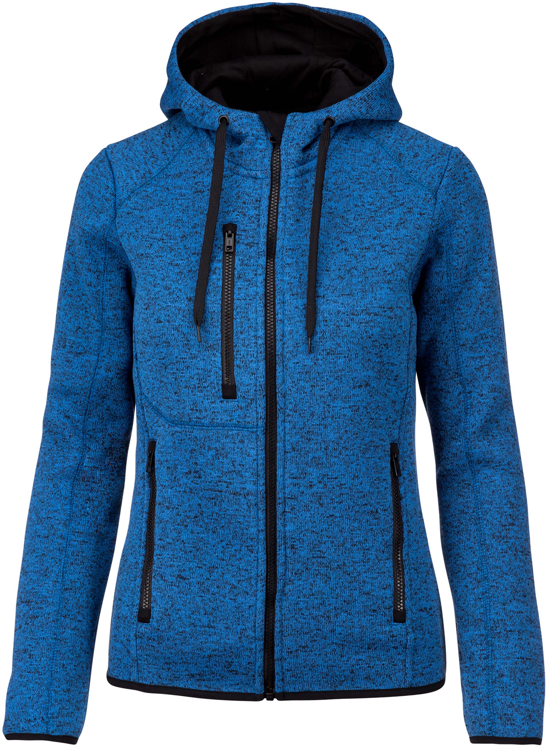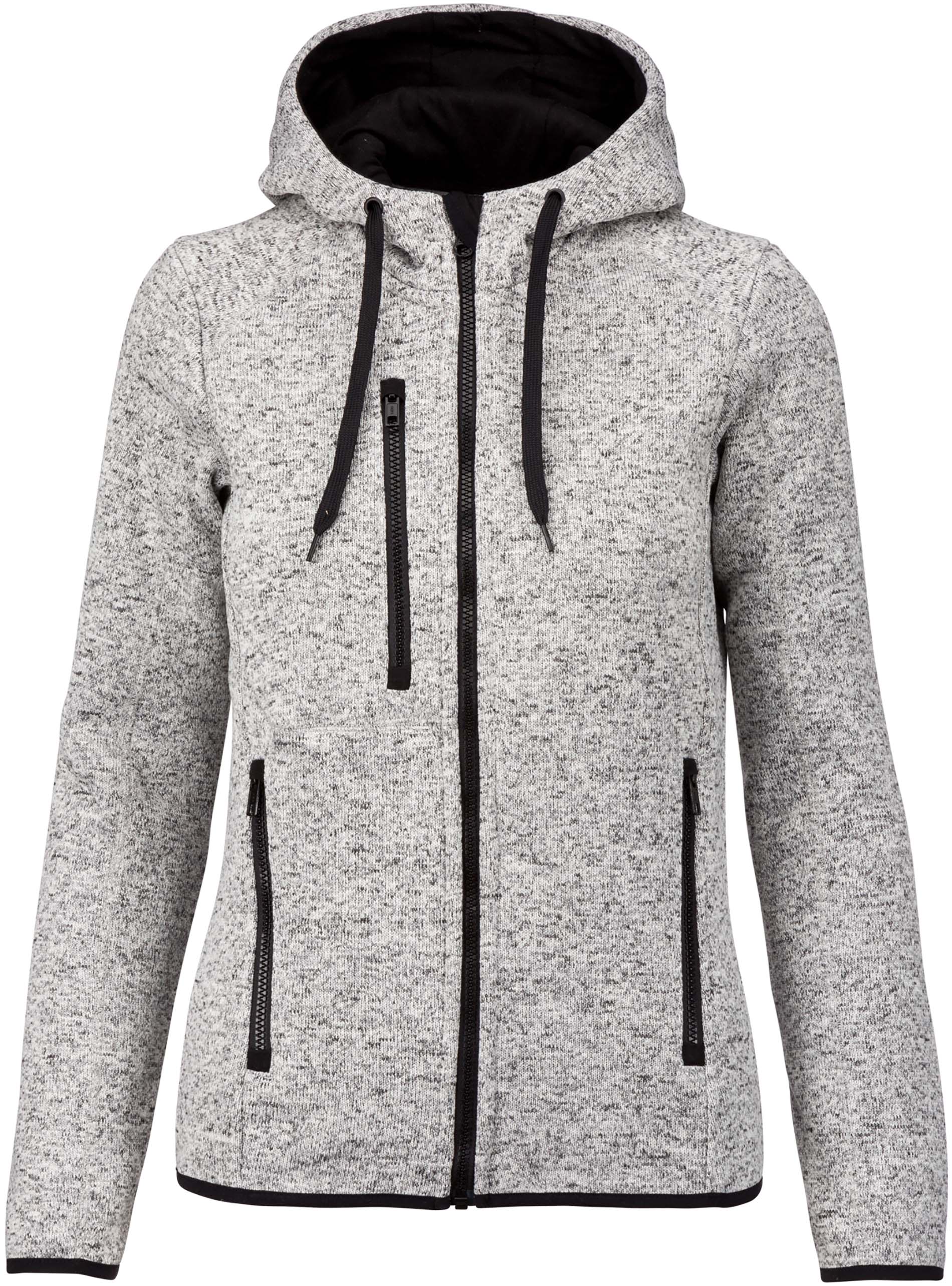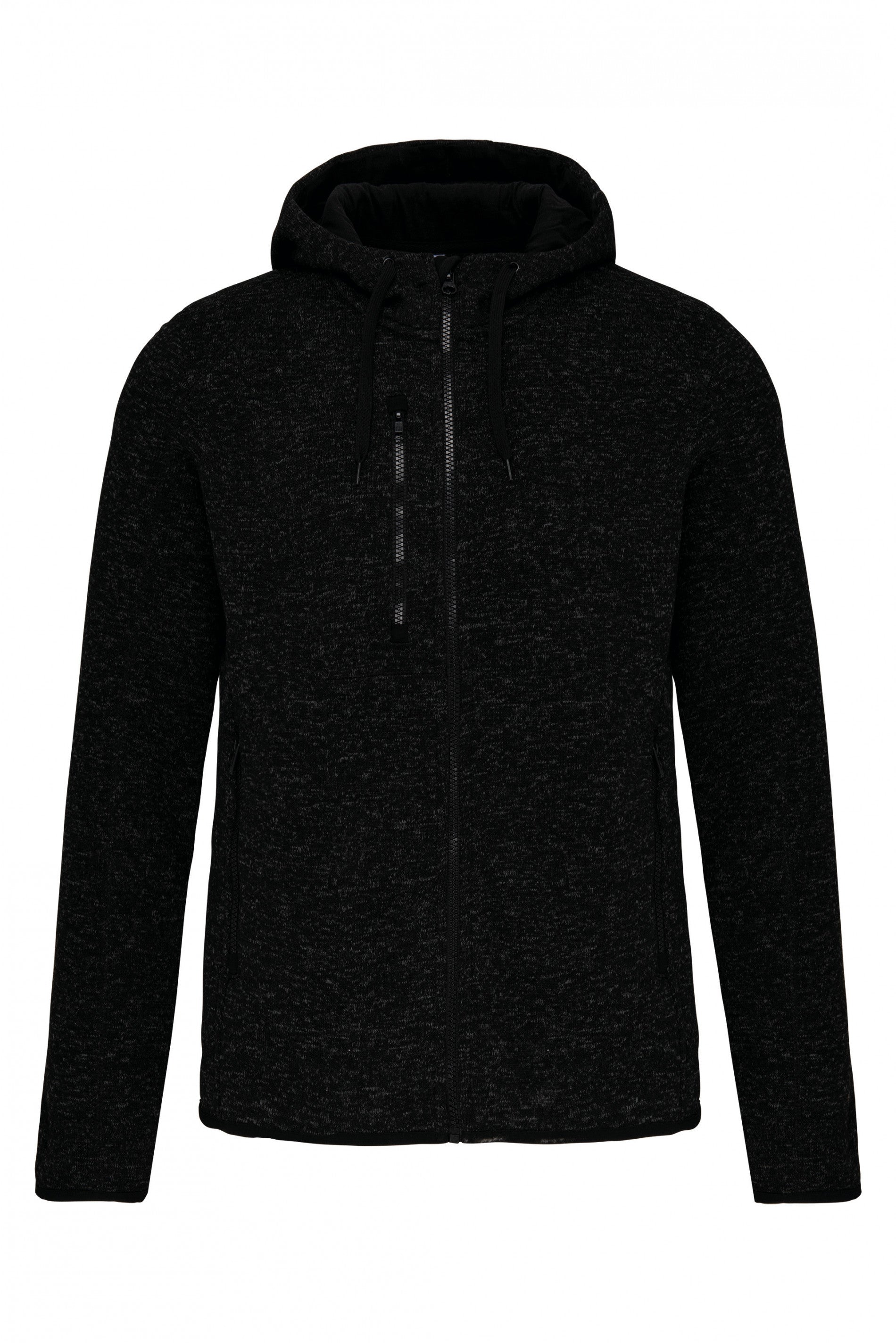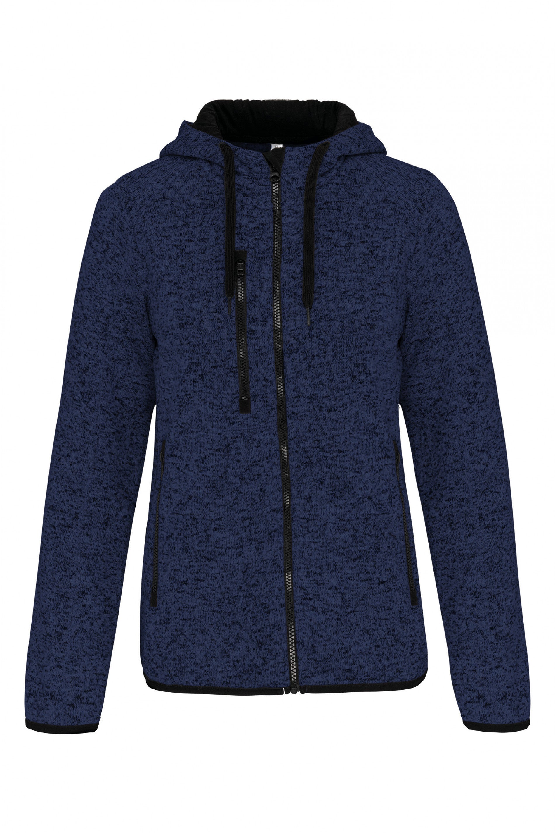Maille intérieure. cardé 100% polyester. 2 poches avant avec zip contrasté et 1 poche poitrine avec zip contrasté. Capuche doublée contrastée en maille jersey 100% coton avec cordon de serrage plat contrastant. Finition des manches et de la taille avec superposition élastique contrastée. Finitions et détails à la mode. Poids 345 Dimensions