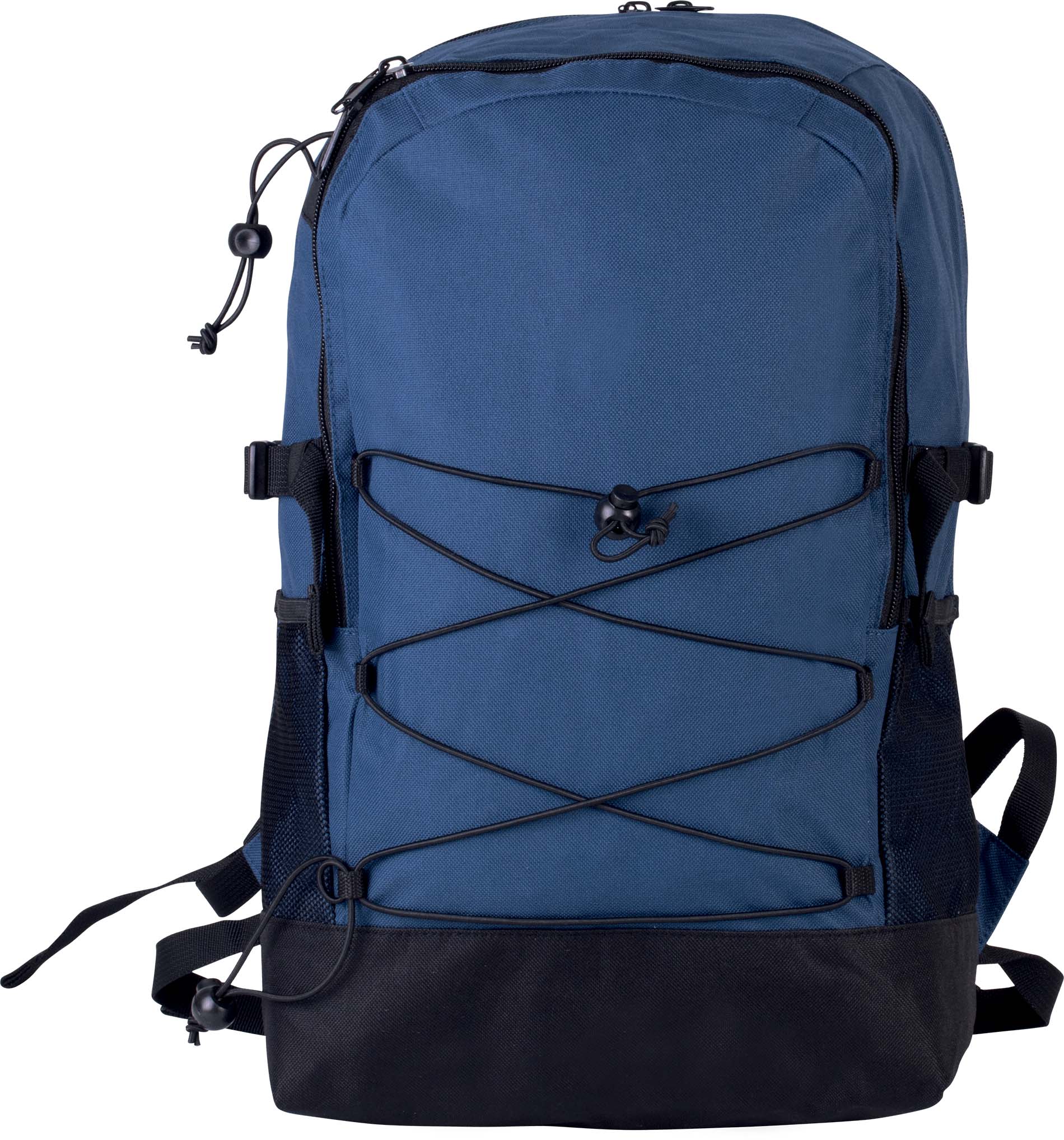 Sac à dos en polyester 600D. 2 compartiments intérieurs avec 1 poche zippée. Filet élastique sur le devant. Bretelles et dos...