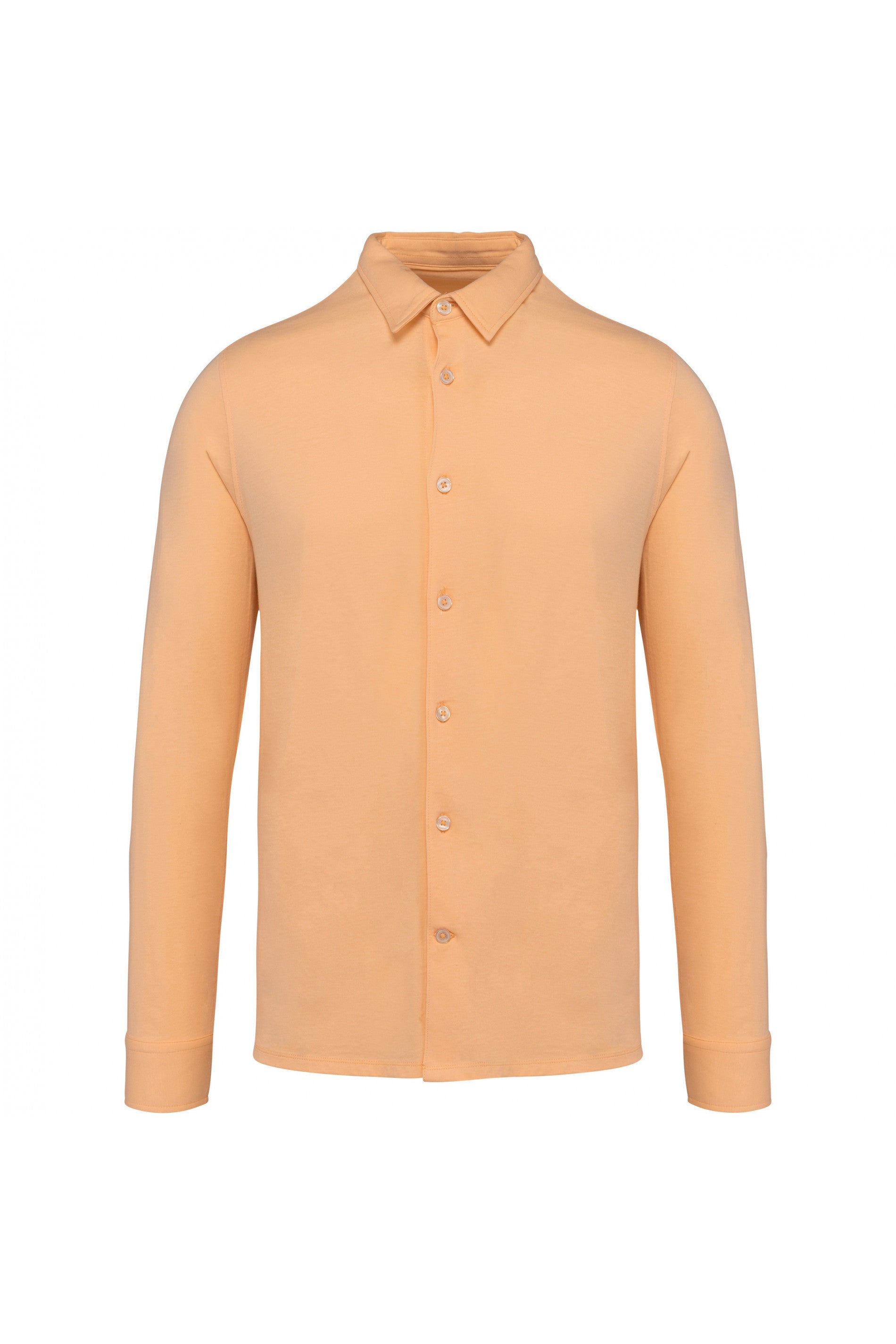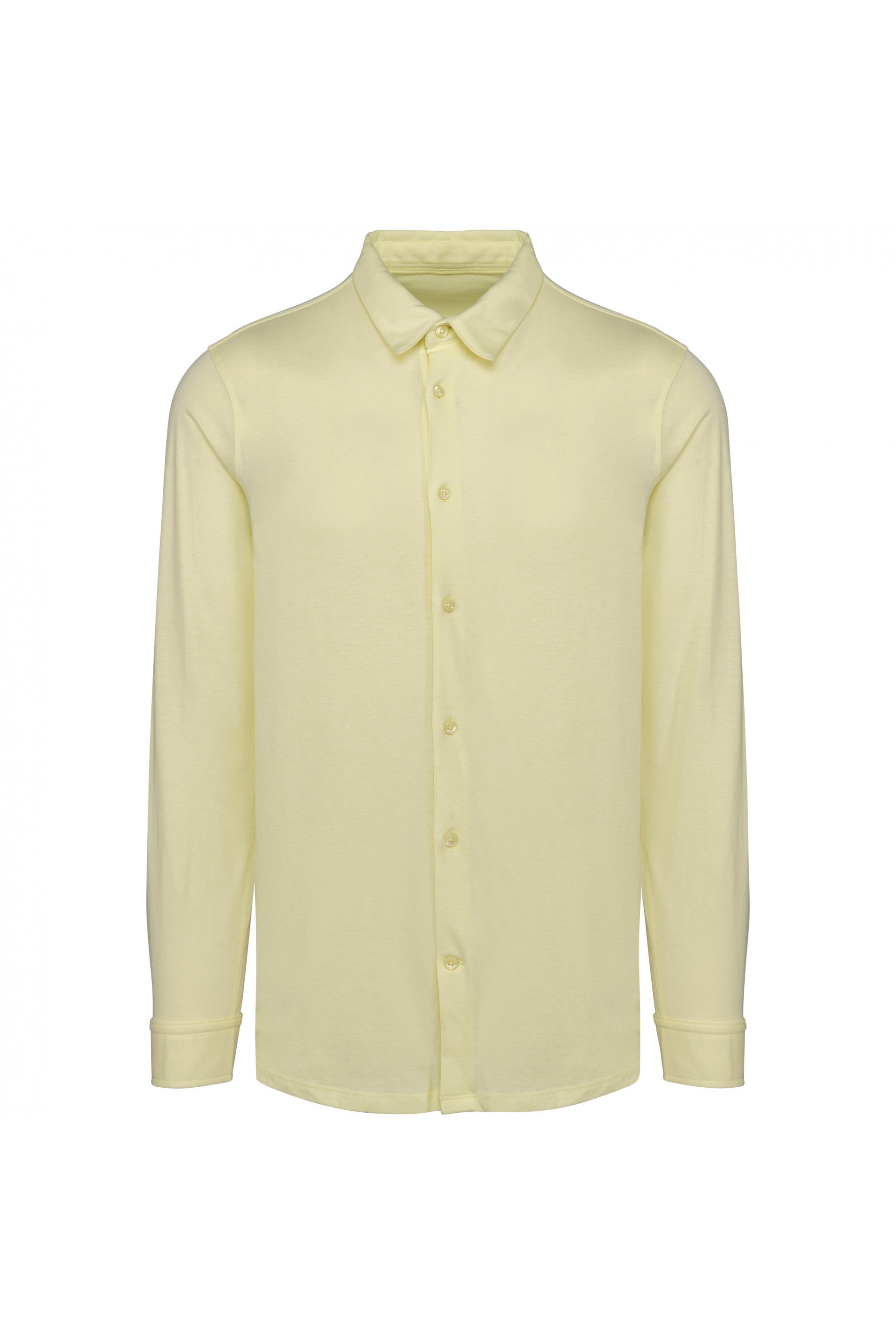 Le col dans le matériau principal, renforcé avec du maintien, donne à la chemise une touche formelle, tandis que les effilements de la couture intérieure en jersey ton sur ton assurent un confort même lors d'une utilisation prolongée. La patte de boutonnage à l'avant, équipée de boutons recyclés à effet nacré, est un détail raffiné qui rehausse l'esthétique générale de la pièce.