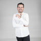 Chemise pour le commerce et l'esthétique, manches courtes. Col à sangle. Fermeture à crochet et œillet. Avec 3 poches, 1 supérieure et 2 inférieures. Couleur blanche. Longueur 73 cm. Unisexe. (consulter les enseignantes).