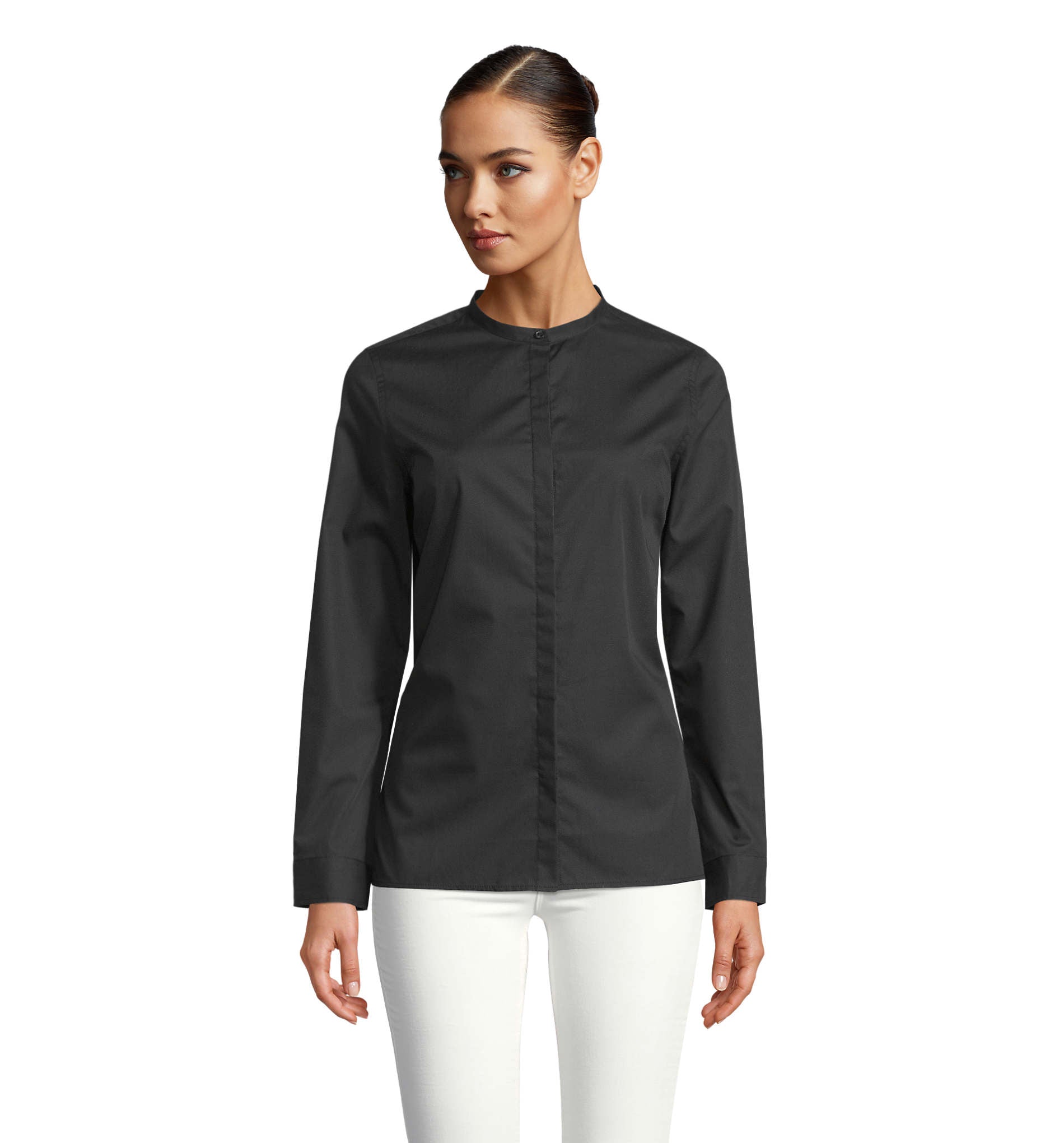 Le col Mao de la chemise Mandarin apporte un style indéniable à celle qui la porte. Entre tradition et modernité, chic et tendance, elle s'adapte à toutes les situations et séduit celles qui veulent se démarquer. La popeline, le bouton caché et les fentes latérales ajoutent de l'élégance à cette chemise confectionnée dans des matières éco-responsables.