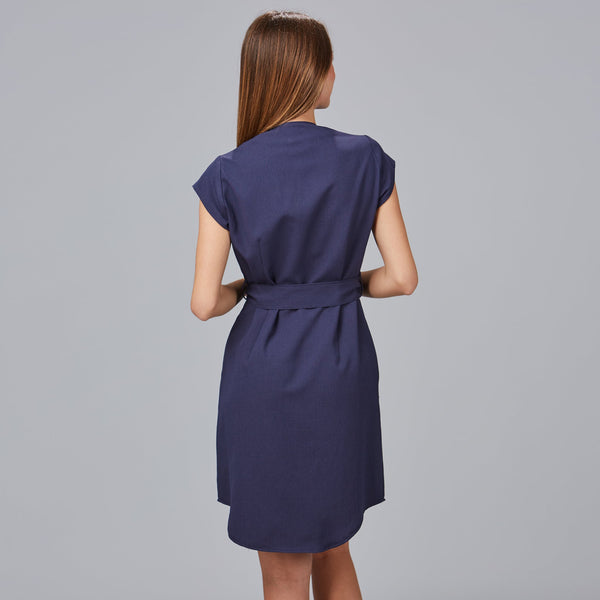 La manche courte au niveau de l'emmanchure garantit confort et liberté de mouvement, vous permettant de travailler en toute aisance tout au long de la journée de travail. La fermeture centrale avec boutons recouverts est non seulement fonctionnelle, mais aussi un détail design qui ajoute de la distinction à la robe. Facile à serrer et à desserrer, il facilite votre quotidien.