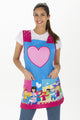 Grembiule da educatore con motivo pioggia di lumache e stampa quadrata sul lato. Tessuto corallo sul retro e cinturini in contrasto...