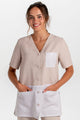 Bata de paciente com mangas curtas. Cor branca. Com alças para prender nas costas. Comprimento: 120cm.