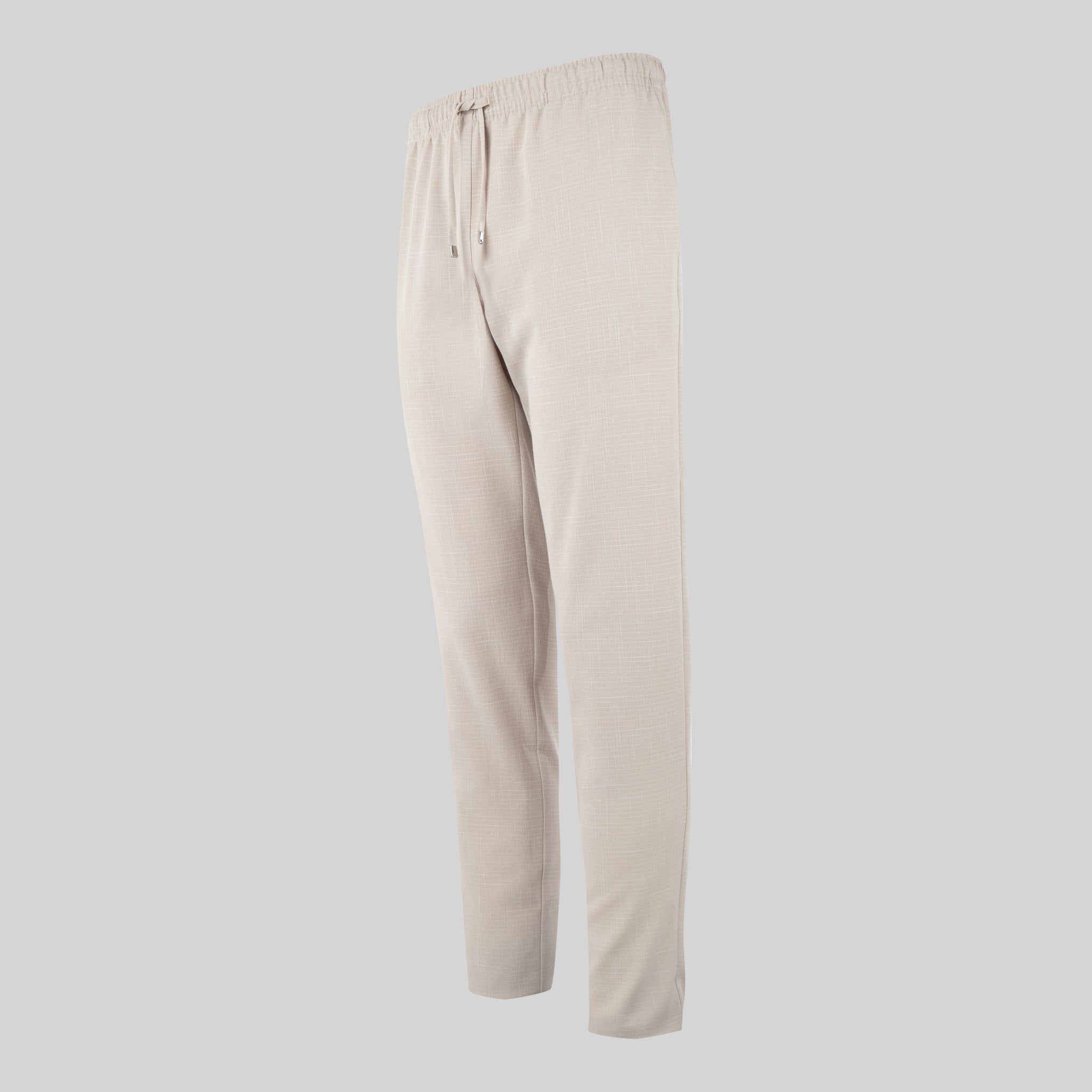 Pantaloni unisex con elastico in vita e coulisse elastica per la regolazione. Presenta due tasche interne in vita e una tasca applicata sul retro. Realizzato in X.LINEN 65% Poliestere - 30% Viscosa - 5% Elastan, un nuovo tessuto elastico dall'aspetto lino, traspirante e morbido al tatto. Da scegliere in verde acqua o beige. Ideale come uniforme per infermieri, medici e altri operatori sanitari in ospedali, cliniche e centri medici, farmacie o aziende.