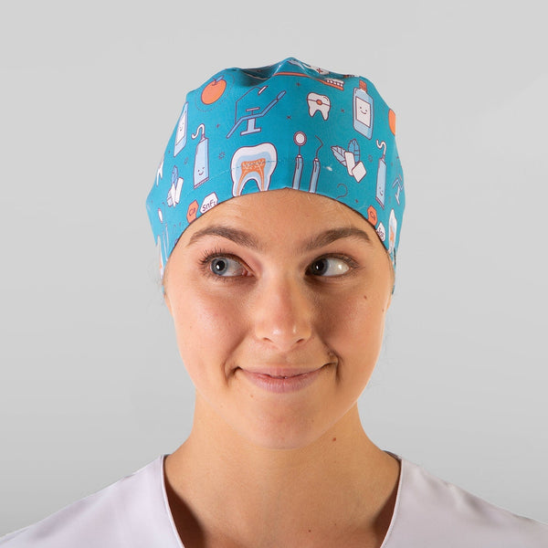 Cuffia chirurgica in tessuto Microfibra da abbinare a casacche della stessa fantasia. Il tessuto antibatterico e idrorepellente. Non c'è bisogno di stirare, si lava a 90 gradi, asciuga velocemente e non cambia colore dopo diversi lavaggi. Tolleranza agli schizzi di candeggina.