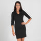95% poliestere/5% elastan. Abito con scollo tondo e maniche a 3/4. Rifinito con nodo decorativo in vita per una vestibilità elegante. Fodera elasticizzata. Lavabile in lavatrice. Grammatura 220 Dimensioni