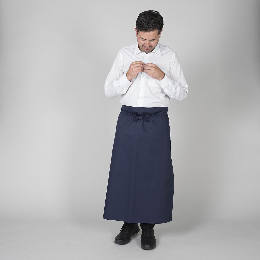 Grembiule francese lungo, senza tasche e con nastri da annodare nello stesso tessuto. Ideale per divise per alberghi, ristoranti, cucine, commercio, chef, camerieri, impiegati, ecc.