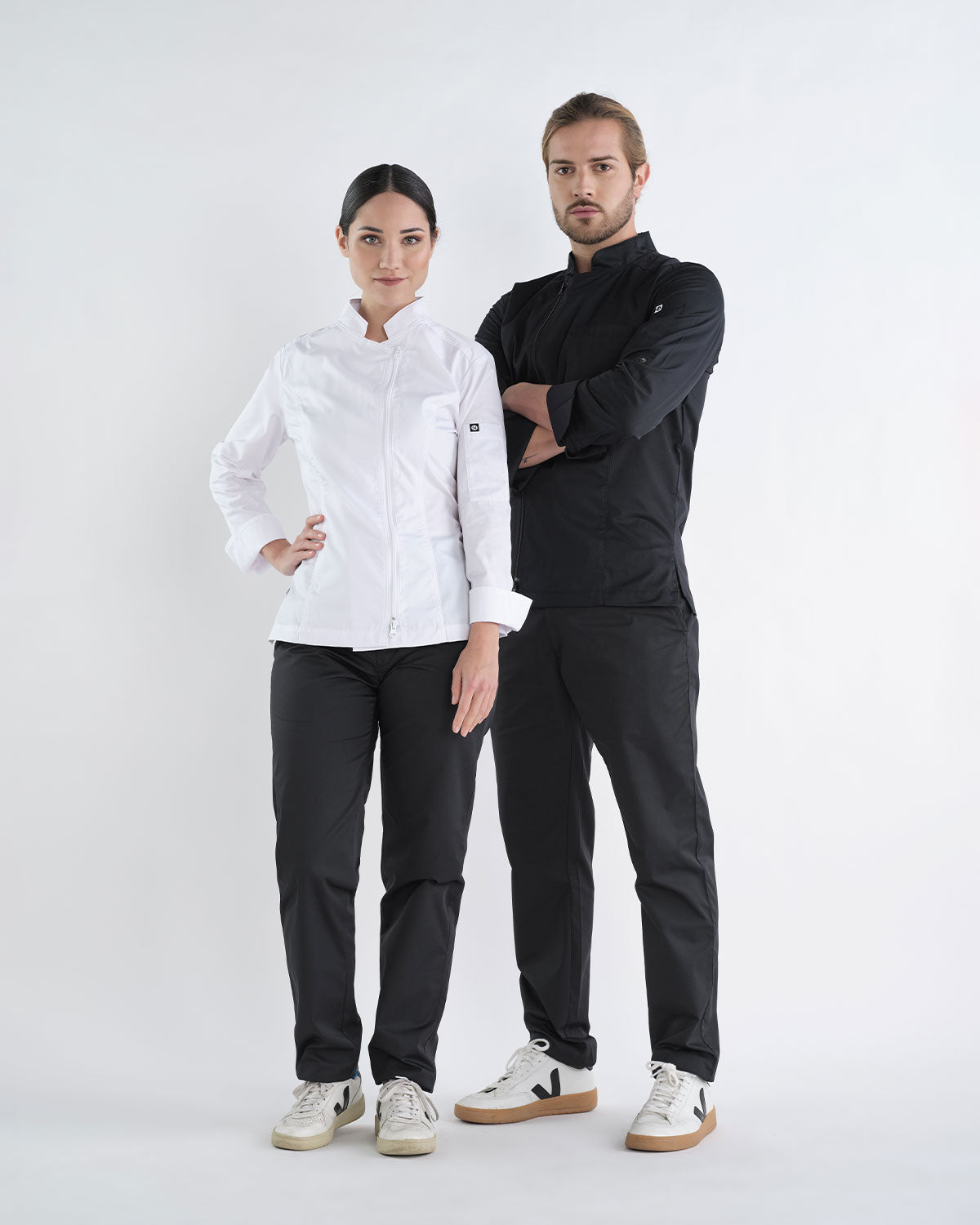 Perfeita para profissionais da saúde, estética, gastronomia e hotelaria, esta jaleca adapta-se sem esforço. Pode ser combinada com calças de trabalho ou saias, criando um uniforme profissional elegante e coeso. A sua funcionalidade e design neutro permitem que se integre facilmente em qualquer guarda-roupa profissional. A modelo apresentada, com 168 cm de altura, veste o tamanho XS.