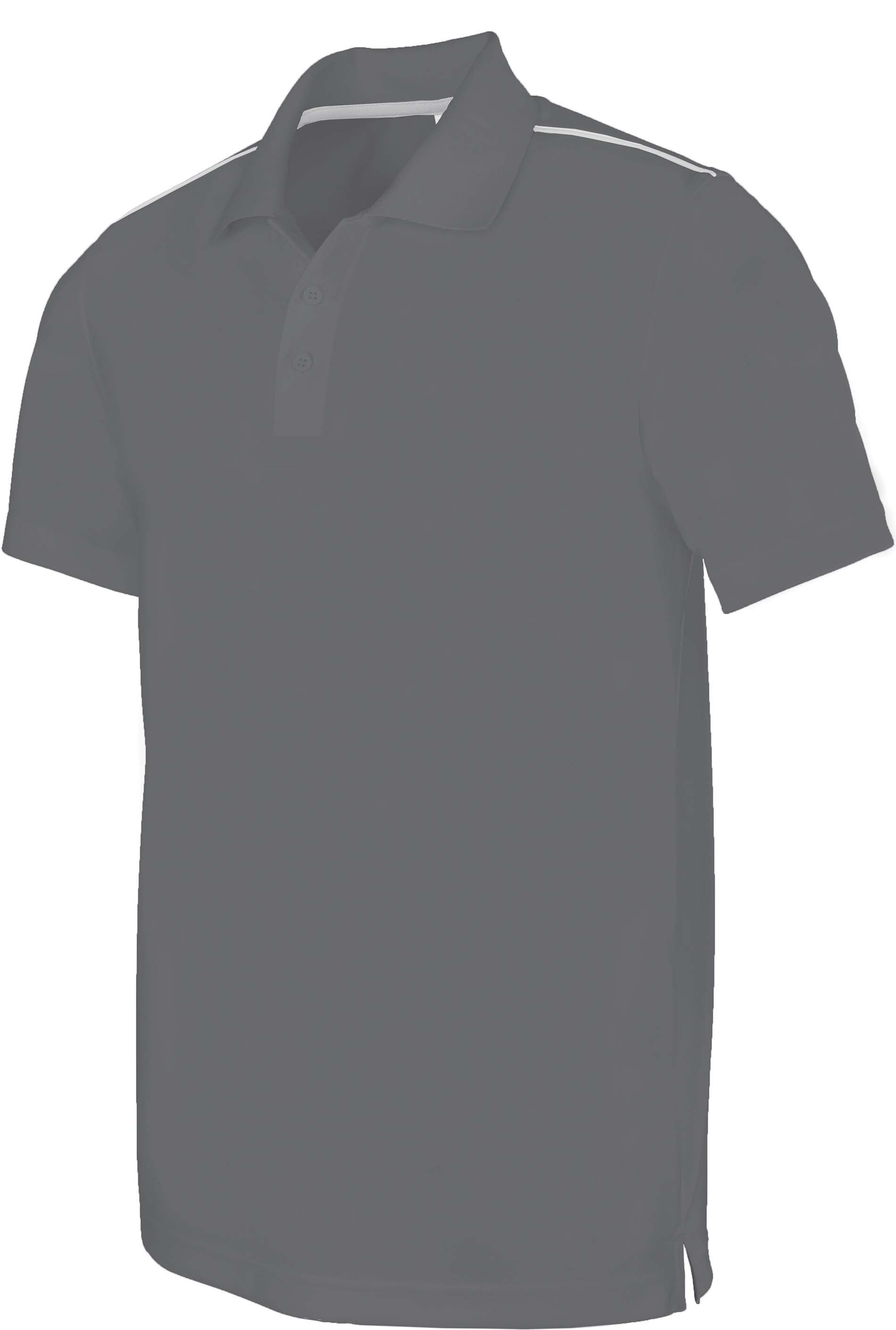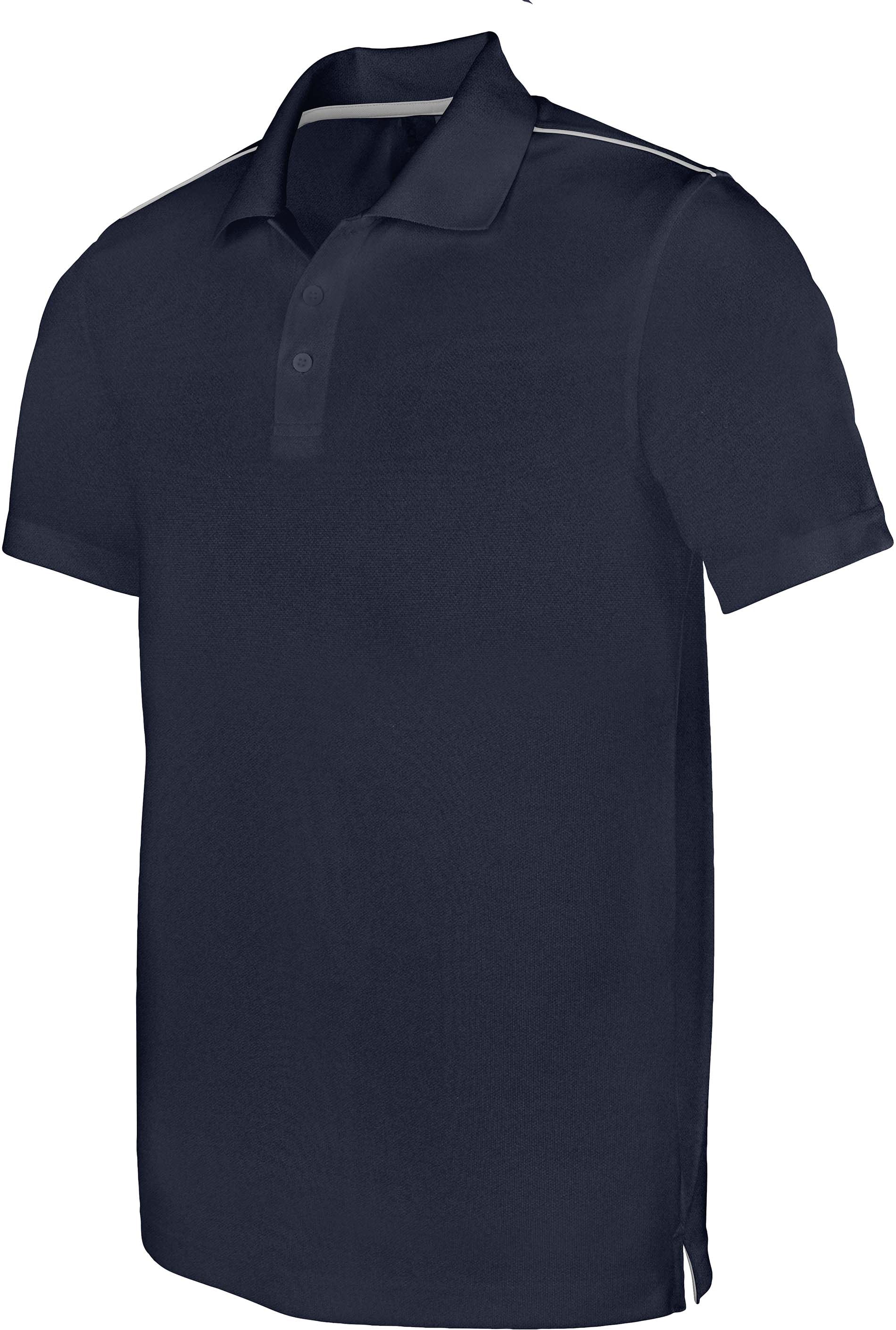 100% poliestere intrecciato. Tessuto Quick dry® ad asciugatura rapida. Colletto in maglia liscia. Abbottonatura con 3 bottoni. Copre cuciture e aperture laterali in contrasto. Cuciture a contrasto sulla spalla. Finitura con doppia cucitura. Grammatura 155 Dimensioni