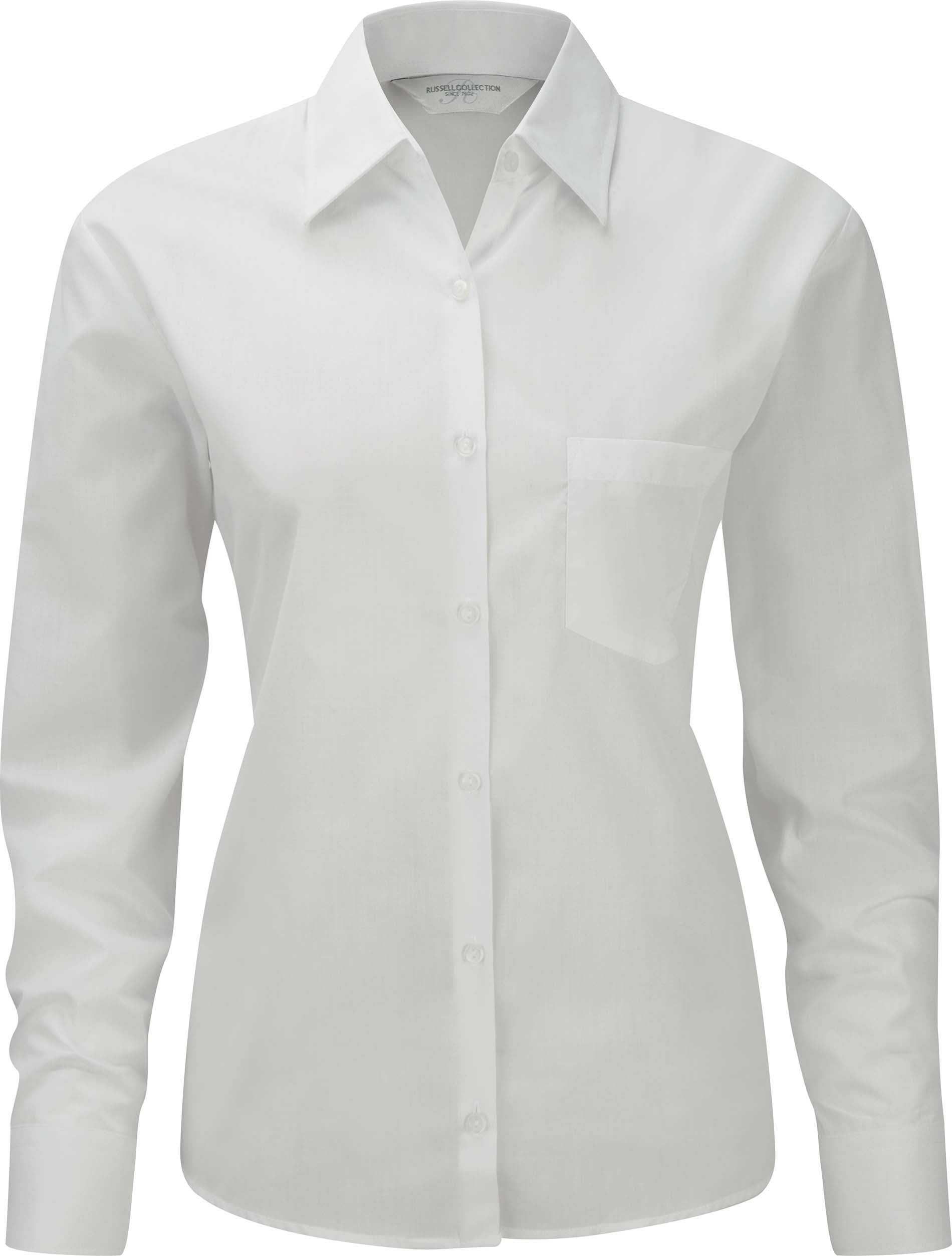 Miscela: 65% poliestere - 35% cotone. Camicia executive elegante in popeline classico. Trattamento facile. Colletto classico con un solo bottone. Pulsanti colorati. Tasca sul petto a sinistra con finitura a V. Polsini arrotondati regolabili con 2 bottoni. Ideale per abbigliamento da lavoro. è resistente. Grammatura 100/110 Dimensioni