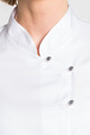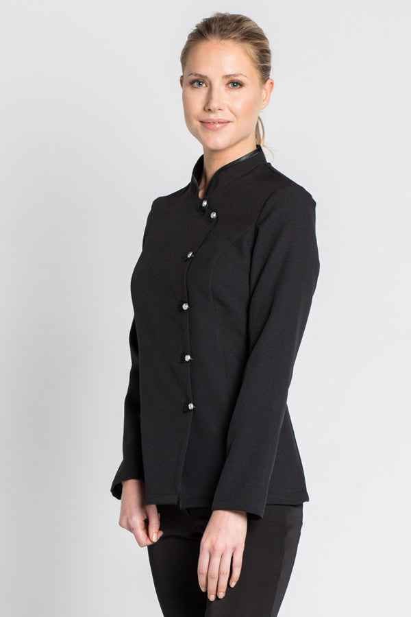Tunica per commercio ed estetica. Manica lunga. Chiusura con bottone quadrato. Il collo di Mao. Lunghezza 66 cm.