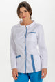 Camisa para comércio e estética, de manga curta. Pescoço em tira. Fecho de gancho e olho. Com 3 bolsos, 1 superior e 2 inferiores. Cor branca. Comprimento 73 cm. Unissex. (consultar as didas femininas).