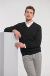 50% algodão. 50% poliacrílico. Pullover com decote em V clássico. Mangas direitas. Acabamento em malha nos punhos e no cós com elastano para maior conforto. Gramagem 275 Dimensão