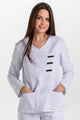 Túnica para comércio e estética, sem mangas. Gola redonda e bico. Com 2 bolsos frontais inferiores. Zíper de lágrima central. Cor branca. Comprimento de 73 cm. Túnica de baixo custo. Dimensionamento: SP - P - M - G - SG - SSG - XG.