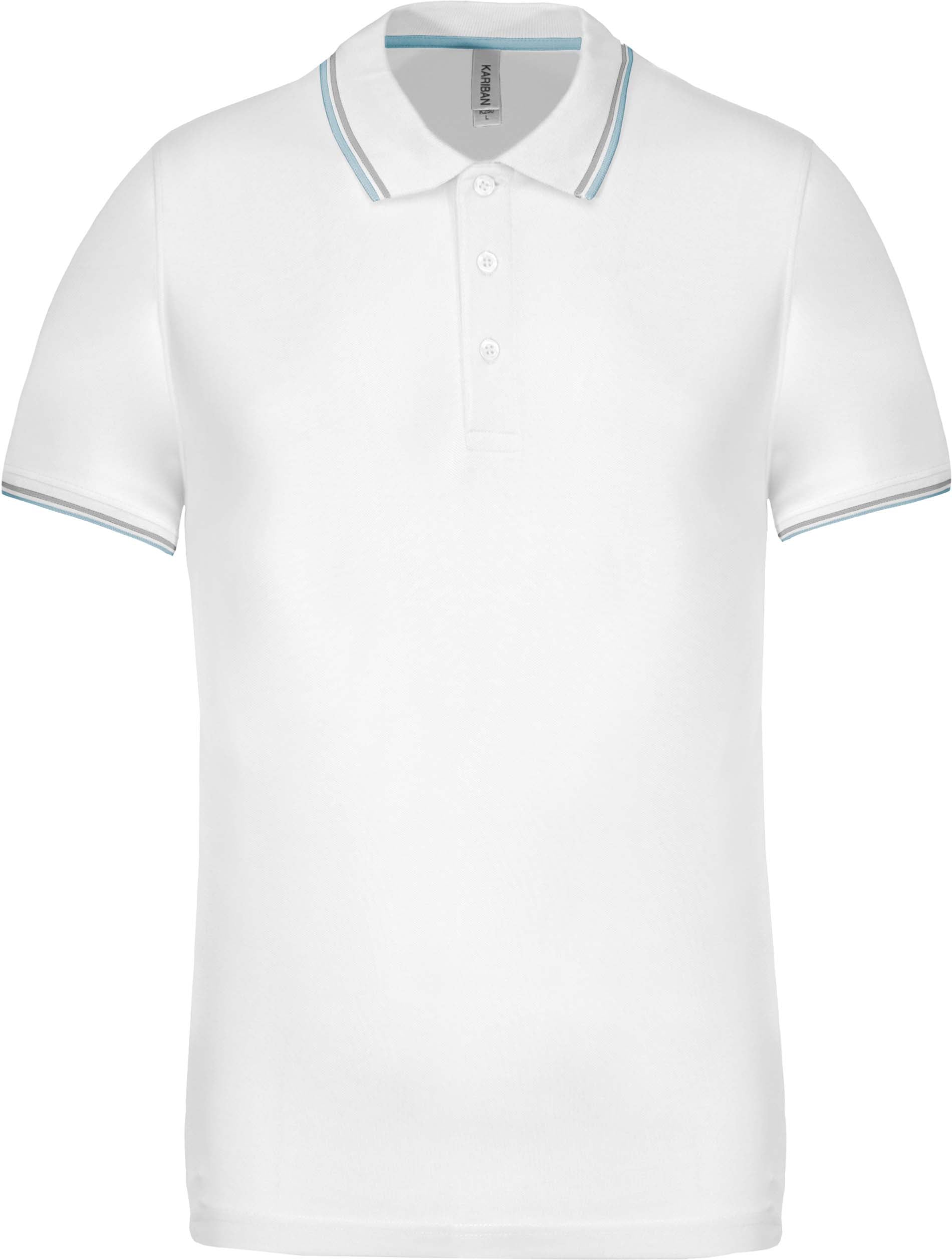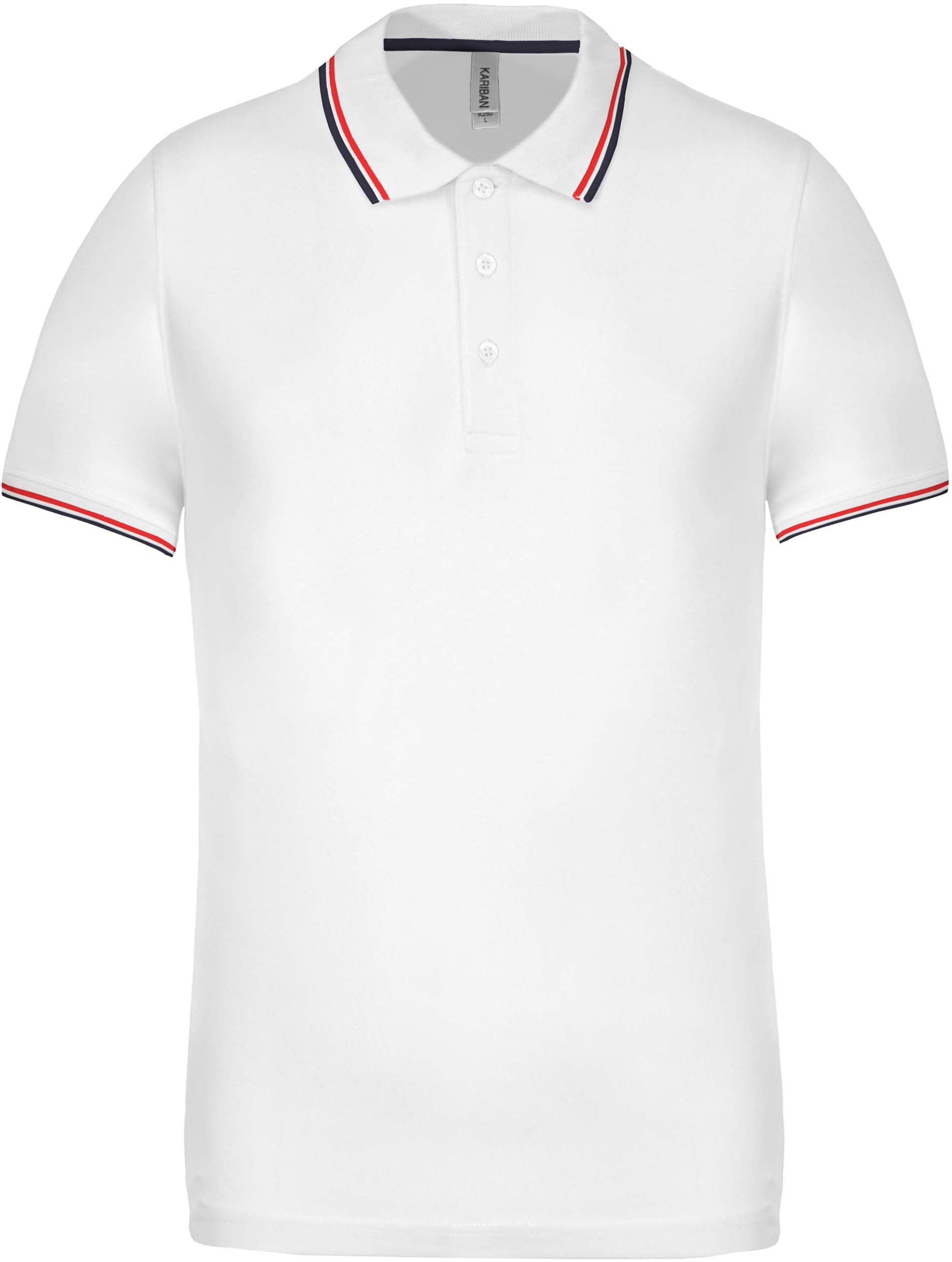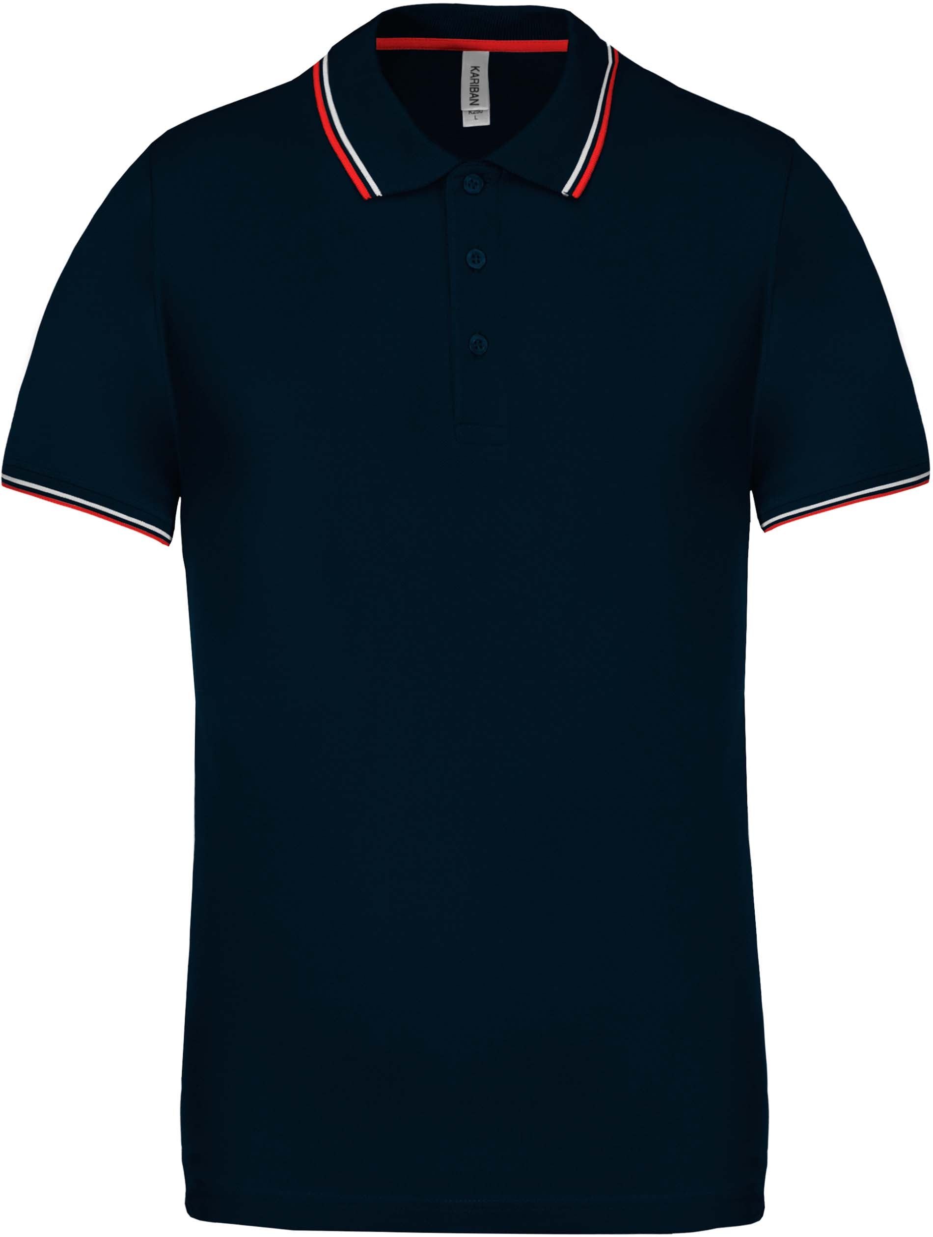 100% algodão piqué. Carcela com 3 botões. Tapa costuras e aberturas laterais em contraste. Colarinho em malha rib e detalhe em contraste no colarinho e na manga. Acabamento costura dupla. Gramagem 220 Dimensão
